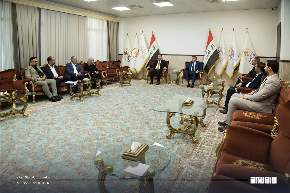 استقبل رئيس جامعة وارث الأنبياء (عليه السلام)، الأستاذ الدكتور إبراهيم الحياوي، وفداً من نقابة الصحفيين العراقيين فرع كربلاء برئاسة الأستاذ حسين الشمري.