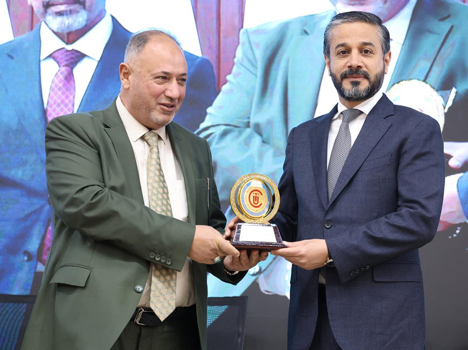 كرم وزير التعليم العالي والبحث العلمي الدكتور نعيم العبودي الفائزين بجائزة التميز لمطوري الذكاء الاصطناعي.