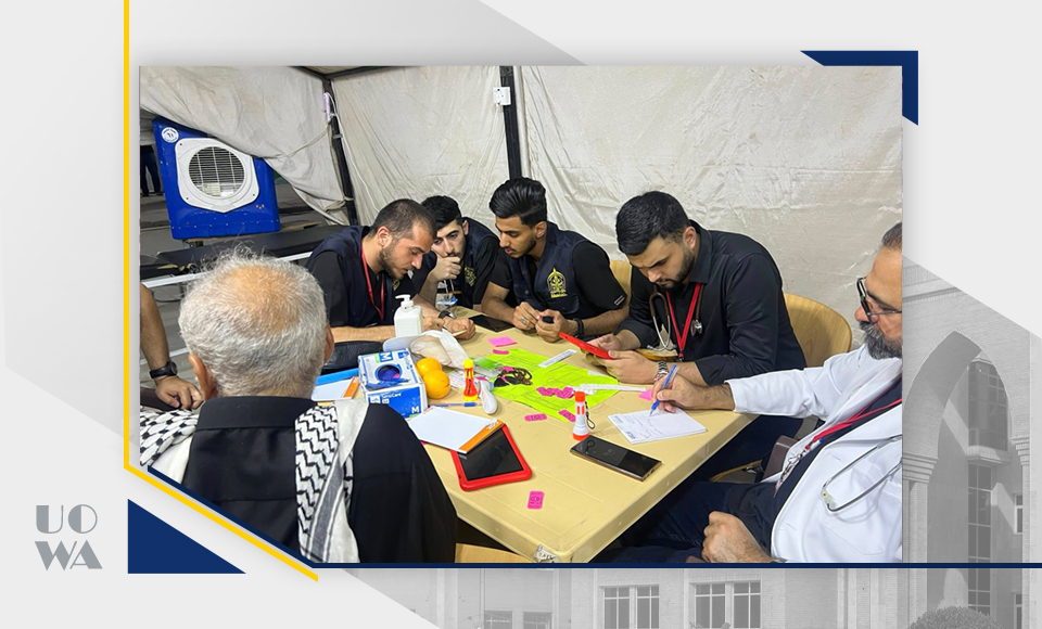 في أجواء الإيمان والعطاء وضمن المسؤولية الإنسانية والمجتمعية تواصل المفارز الطبية لطلبة كلية الطب في جامعة وارث الانبياء عليه السلام عملها الدؤوب لخدمة ملايين الزائرين الوافدين إلى كربلاء المقدسة لإحياء أربعينية الإمام الحسين (عليه السلام).