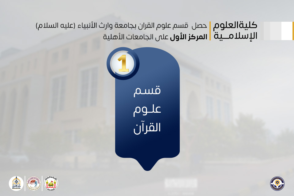 وأحرز قسم علوم القرآن في كلية العلوم الإسلامية المركز الأول على مستوى الجامعات الأهلية، والمرتبة الثانية بين الجامعات الحكومية، في تأكيد على تميز البرامج العلمية التي تسهم في ترسيخ التعليم النوعي ونشر المعرفة، انسجامًا مع الهدف الرابع من أهداف التنمية المستدامة (التعليم الجيد).