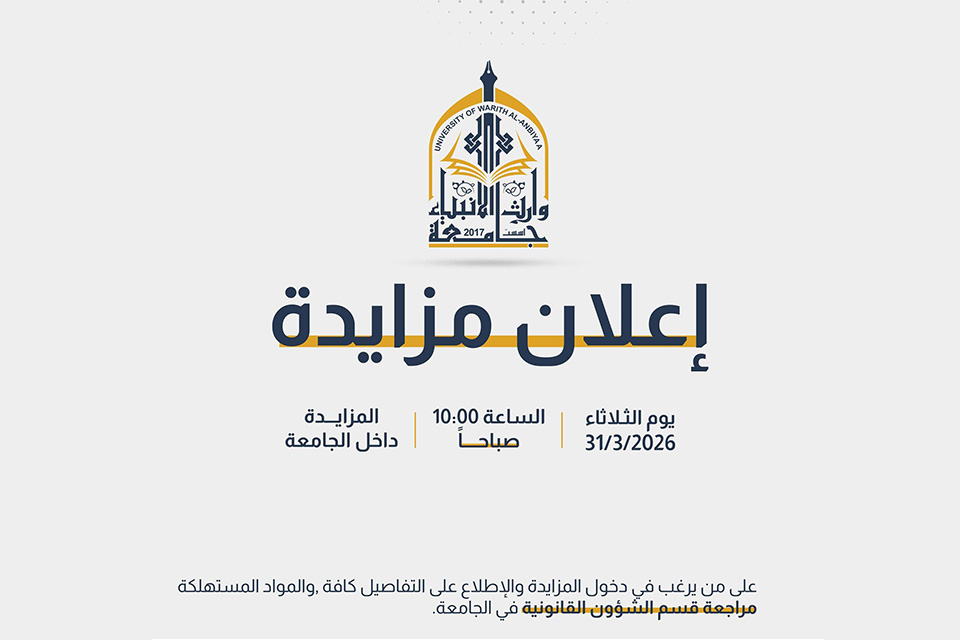 مزايدة علنية لبيع المواد المستهلكة بجامعة وارث الأنبياء