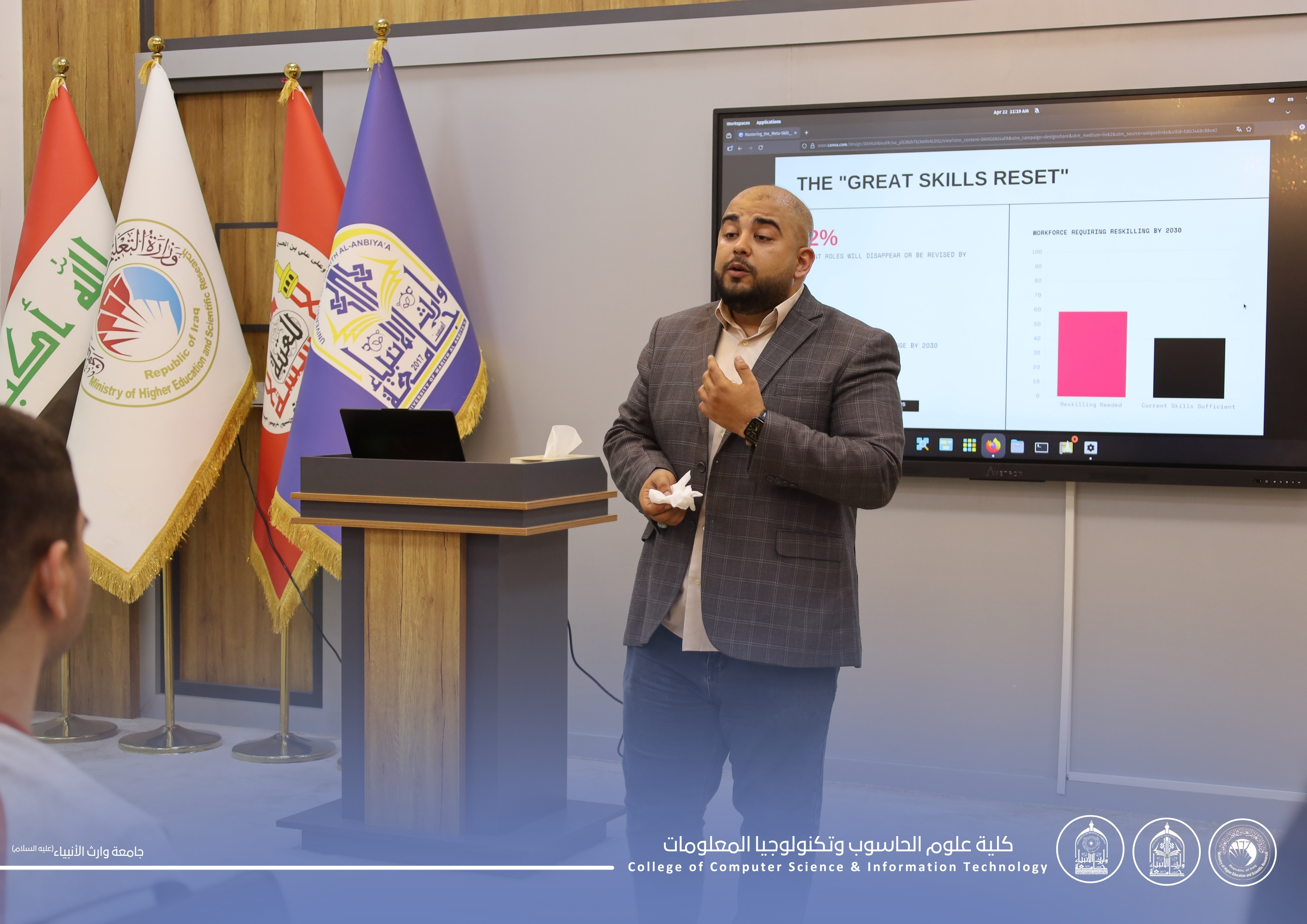 برعاية السيد رئيس جامعة وارث الأنبياء (ع) الأستاذ الدكتور إبراهيم الحياوي، وبإشراف عميد كلية علوم الحاسوب وتكنولوجيا المعلومات الأستاذ المساعد الدكتور حيدر الغانمي، نظّمت الكلية بالتعاون مع الاتحاد العربي للتمكين الرقمي في العراق ورشة تدريبية: