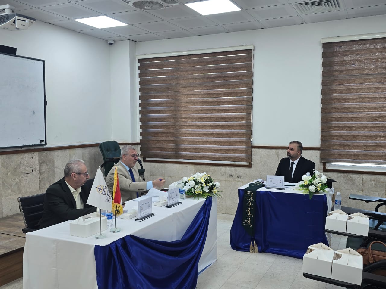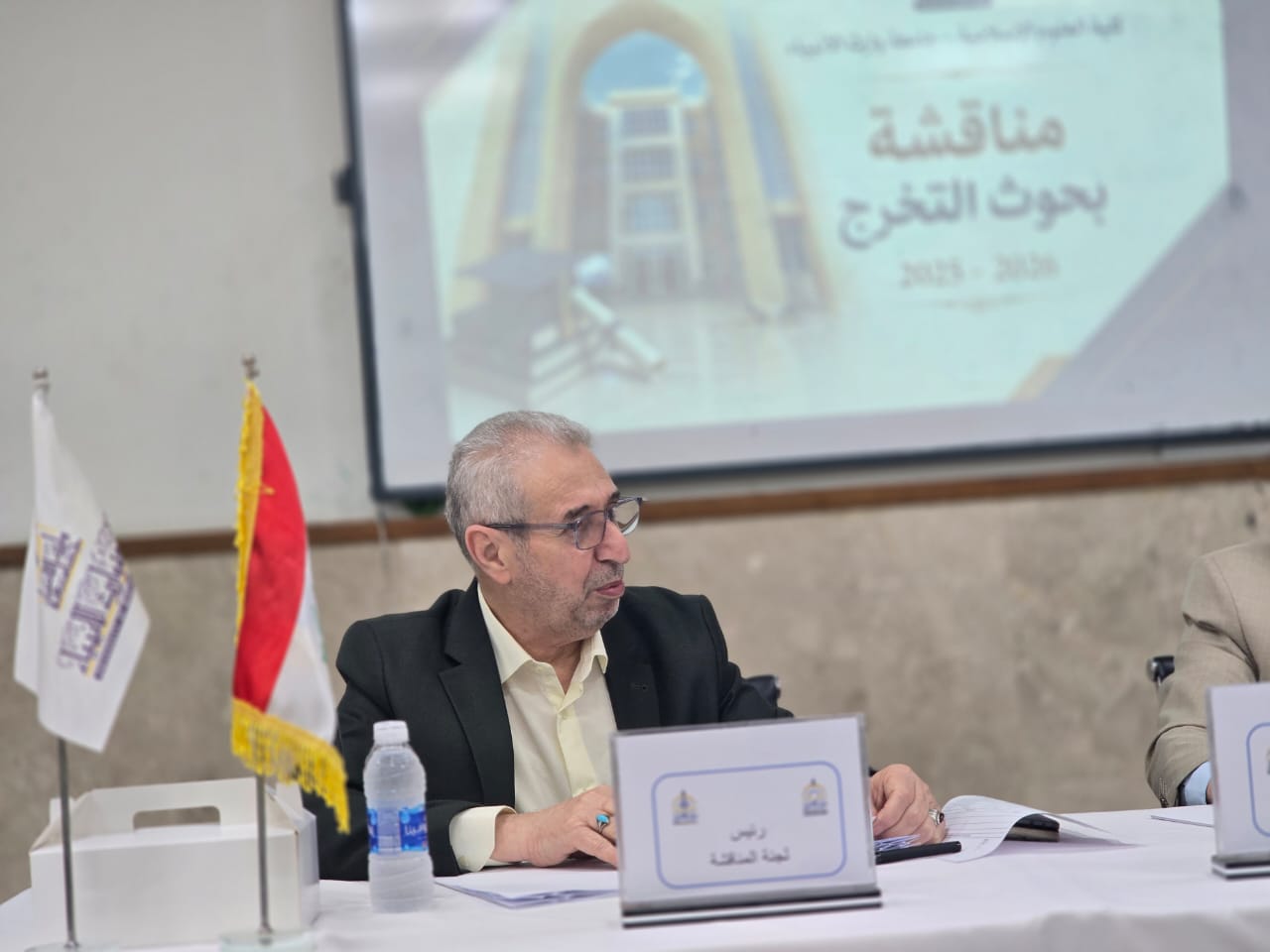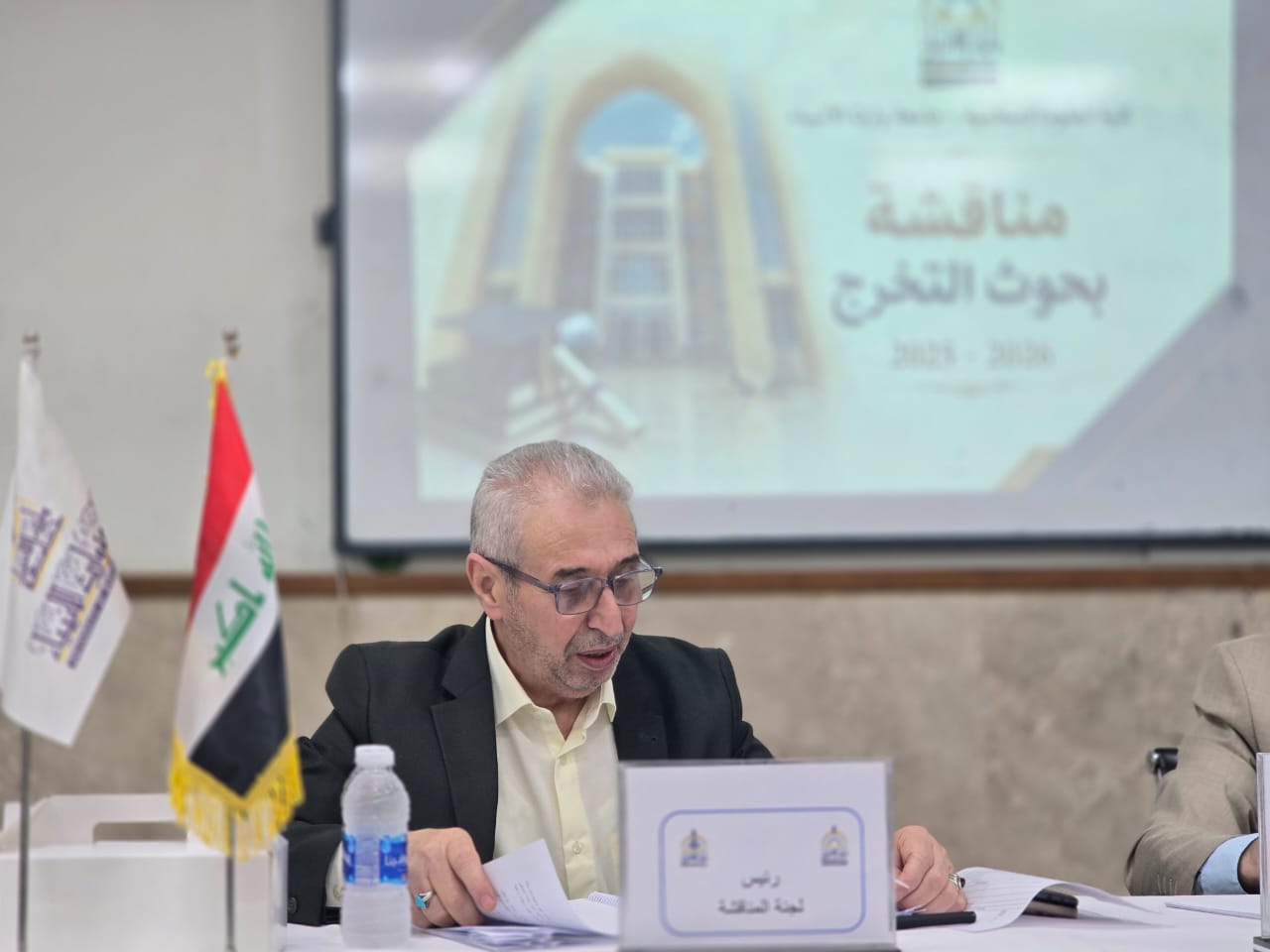 وشهدت جلسات المناقشة حضور السيد عميد الكلية المحترم الدكتور طلال فائق الكمالي، والسيد رئيس الجامعة الدكتور إبراهيم الحياوي، إلى جانب السيد المساعد العلمي الدكتور واقد، والسيد المساعد الإداري الدكتور نوفل، حيث اطلعوا على سير المناقشات وأشادوا بجهود اللجان العلمية والطلبة في إعداد بحوثهم.