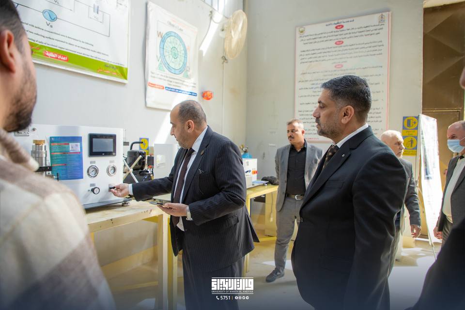 تفقد رئيس جامعة وارث الانبياء (عليه السلام)، الاستاذ الدكتور إبراهيم سعيد الحياوي مختبرات كلية الهندسة، لمتابعة تجهيز الأقسام المستحدثة مثل هندسة (النفط والغاز وهندسة الطائرات)، واطلع على الإمكانيات التقنية ومدى توافقها مع معايير التعليم الهندسي المتقدم.