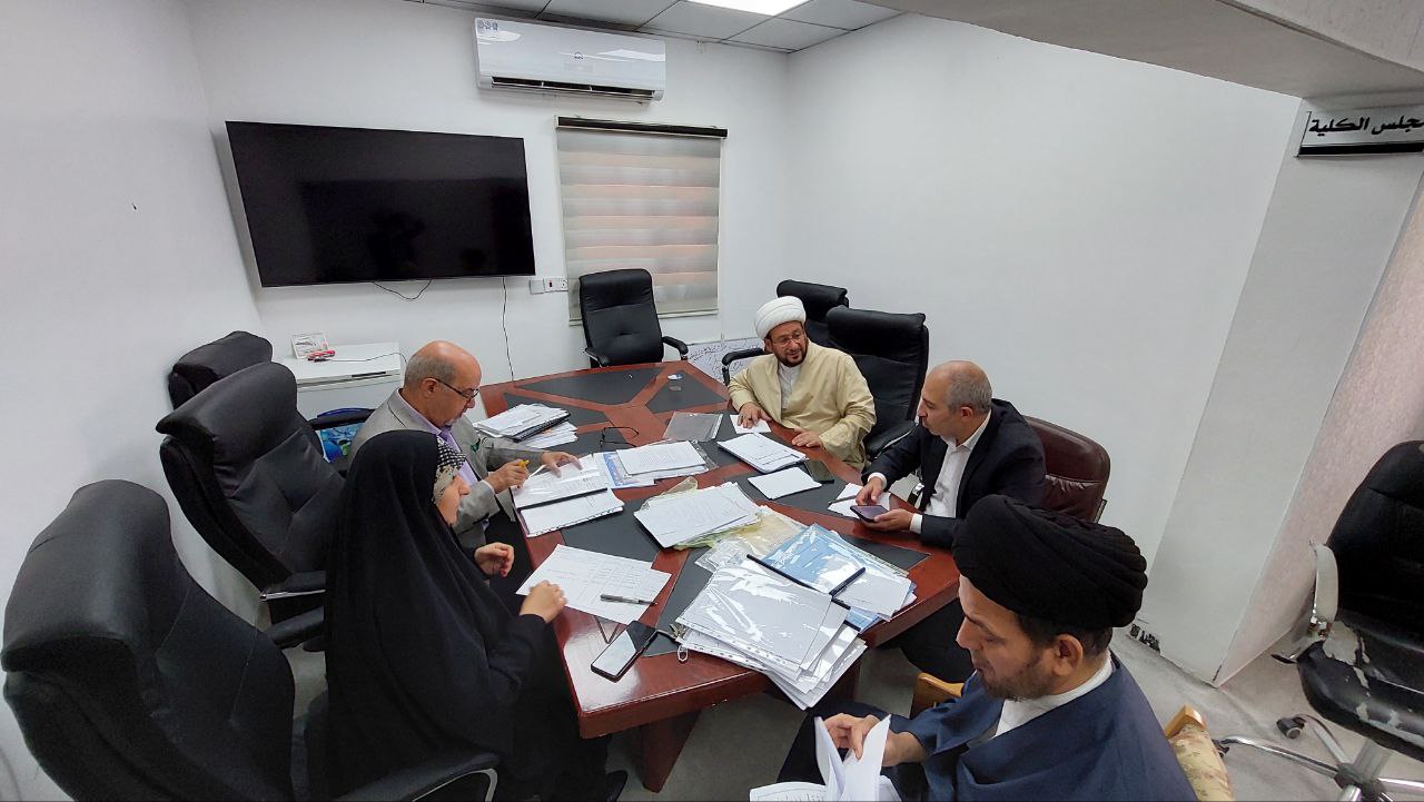 عقد السيد عميد كلية العلوم الإسلامية في جامعة وارث الأنبياء (عليه السلام) الدكتور طلال فائق الكمالي اجتماعًا مع أعضاء الهيئة التدريسية، لمناقشة جملة من القضايا الأكاديمية والإدارية المتعلقة بسير العملية التعليمية في الكلية.