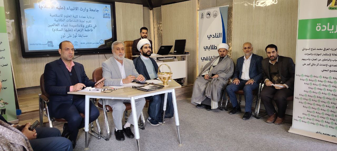 تحت رعاية كريمة من السيد عميد كلية العلوم الإسلامية المحترم، وبإشراف وتنظيم عالٍ من لجنة النشاطات الطلابية، أُقيمت مسابقة «نورٌ على نور» بمناسبة ذكرى ولادة سيدة نساء العالمين السيدة فاطمة الزهراء (عليها السلام)، وذلك في النادي الثقافي الطلابي.