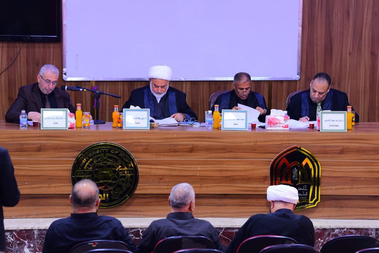 وجرت المناقشة بحضور عدد من الأساتذة والباحثين، حيث تناولت اللجنة محاور الرسالة ومناقشة منهجيتها العلمية ومضامينها الفكرية، وفق الأصول الأكاديمية المعتمدة. وتأتي هذه المشاركة في إطار توطيد أواصر التعاون العلمي والأكاديمي بين جامعة وارث الأنبياء وجامعة الكوفة، بما يسهم في تبادل الخبرات وتطوير مجالات البحث العلمي المشترك.