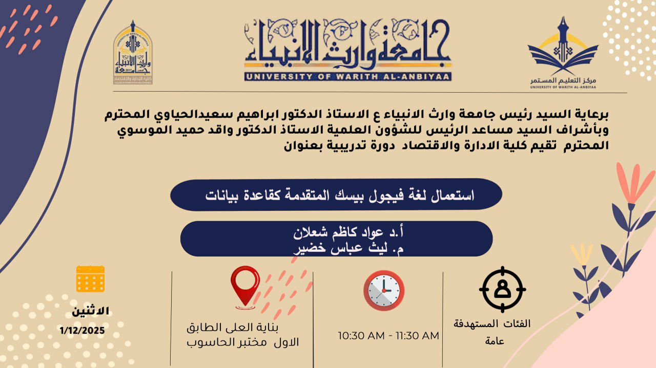 بحضور المساعد العلمي لرئيس الجامعة الأستاذ الدكتور واقد الموسوي، أطلقت جامعة وارث الأنبياء (عليها السلام) - قسم التسجيل والشؤون الطلابية - وبالتعاون مع مركز الحاسبة الإلكتروني - النسخة الأولى من برنامج الخريجين الذكي، وذلك ضمن خطتها الاستراتيجية للتحول الرقمي وتطوير الخدمات الجامعية.