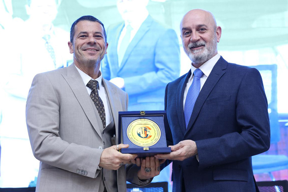 وفي نهاية الحفل قدم السيد عميد كلية الهندسة الدكتور حسين العوادي درعً للسيد رئيس الجامعة عرفاناً لجهوده ودعمه المتواصل للفعاليات العلمية في الجامعة.