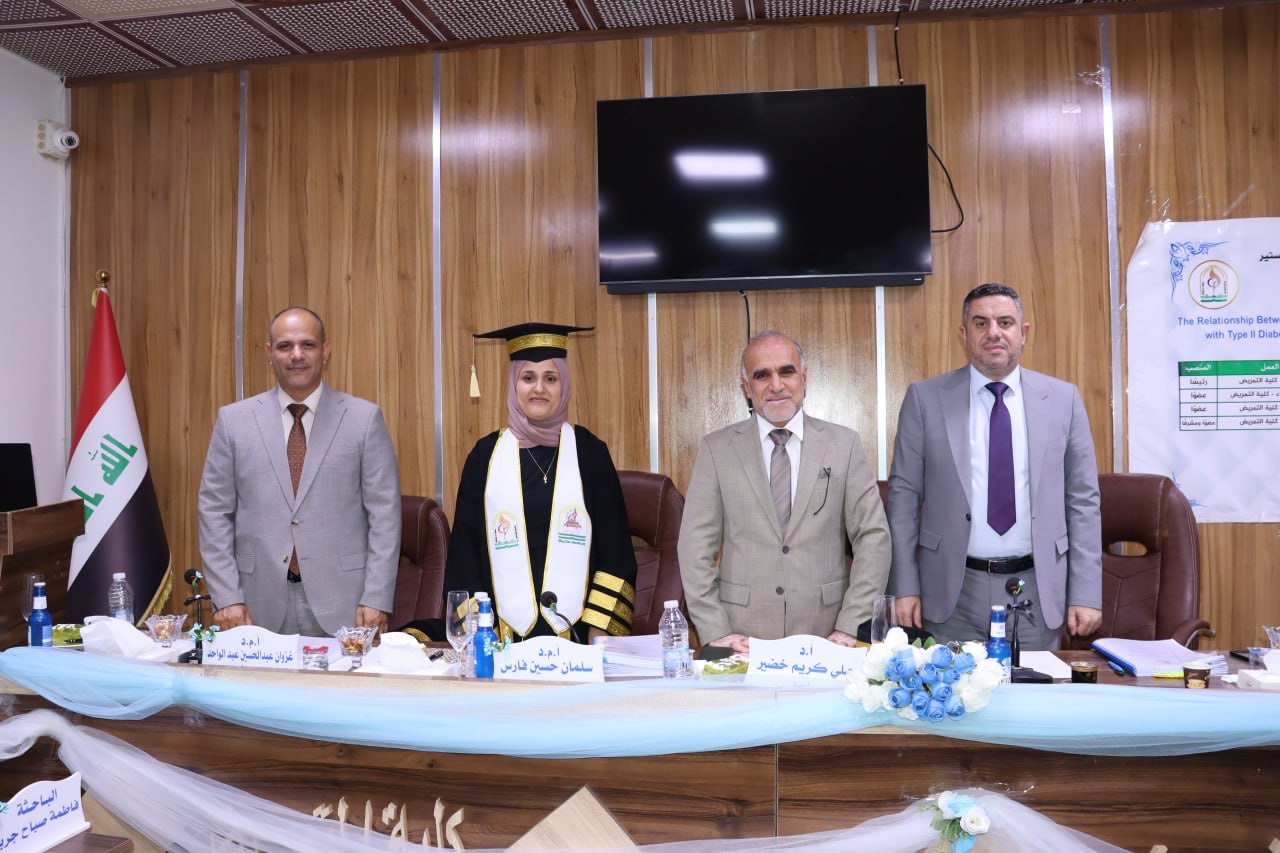 “The Relationship Between Health Literacy and Health Promotion Behaviors for Clients with Type II Diabetes Mellitus in Al-Hassan Diabetes and Endocrine Center”وتألفت لجنة المناقشة من: