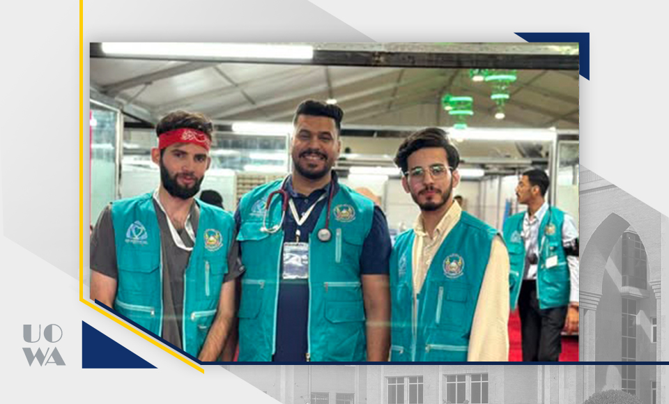 Based on the principle of social responsibility and promoting practical aspects of the medical profession, students from the College of Medicine at Warith al-Anbiya University (PBUH) participated in providing medical and emergency services and health education to pilgrims of Imam Hussein (PBUH) and his brother, Abu al-Fadl al-Abbas (PBUH), during the blessed Day of Arafah. This participation was coordinated and cooperated with the Health and Medical Education Authority and the Imam Hussein Ambassador Hospital affiliated with the Holy Shrine of Imam Hussein (PBUH). This participation embodies the spirit of humanitarian giving among the students and highlights the importance of integrating academic knowledge with field experience in the service of the community and the honorable pilgrims.