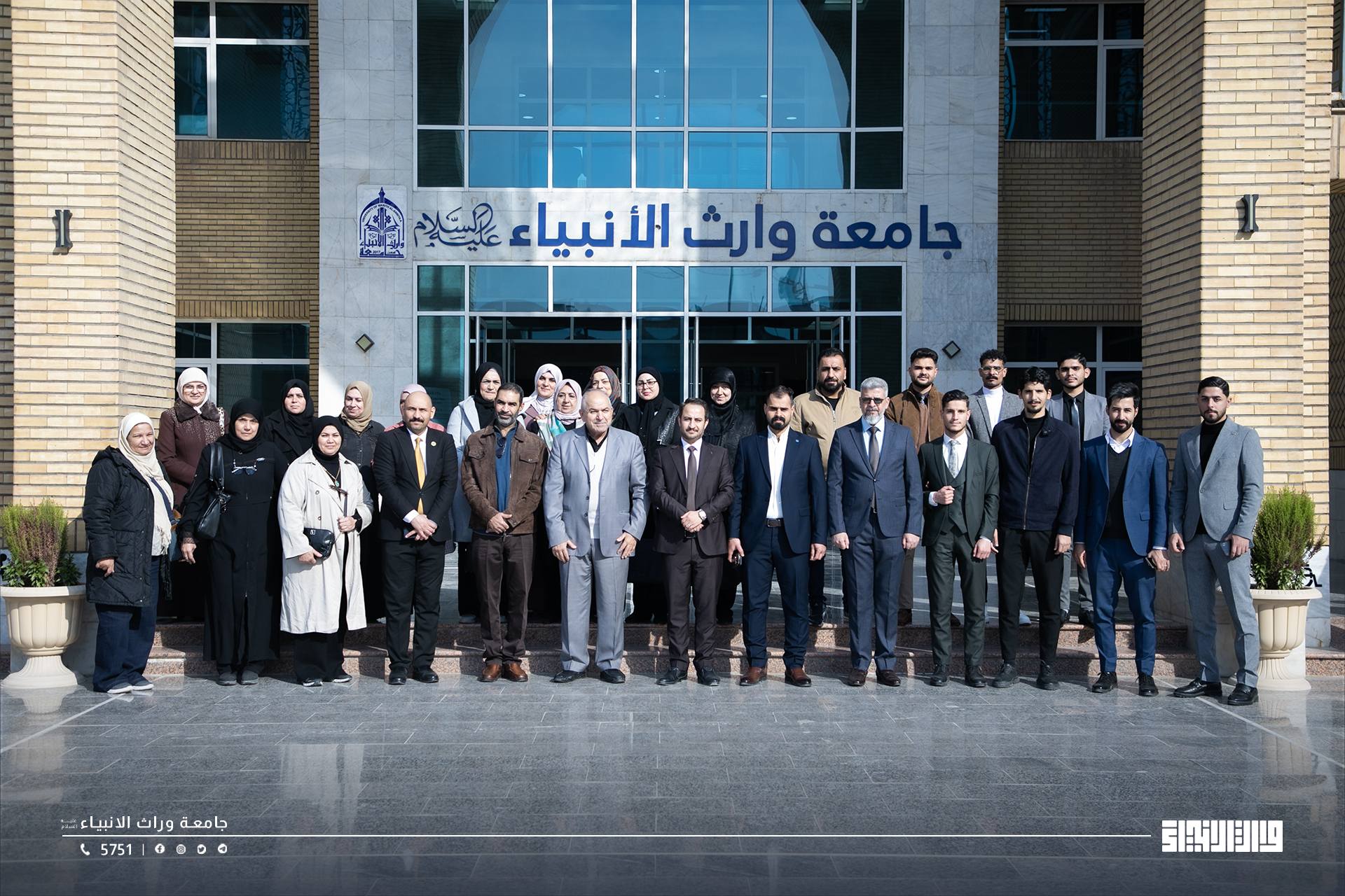 As part of its efforts to strengthen institutional cooperation with state institutions, the Presidency of the University of Warith Al-Anbiyaa received a high-level delegation from the Iraqi Ministry of Foreign Affairs, headed by the Deputy Minister for Political Planning, Dr. Hisham Al-Alawi. The delegation was welcomed by the University President, Professor Dr. Ibrahim Saeed Al-Hayyawi, accompanied by the Vice President for Scientific Affairs, Professor Dr. Waqed Al-Moussawi, and members of the University Council.