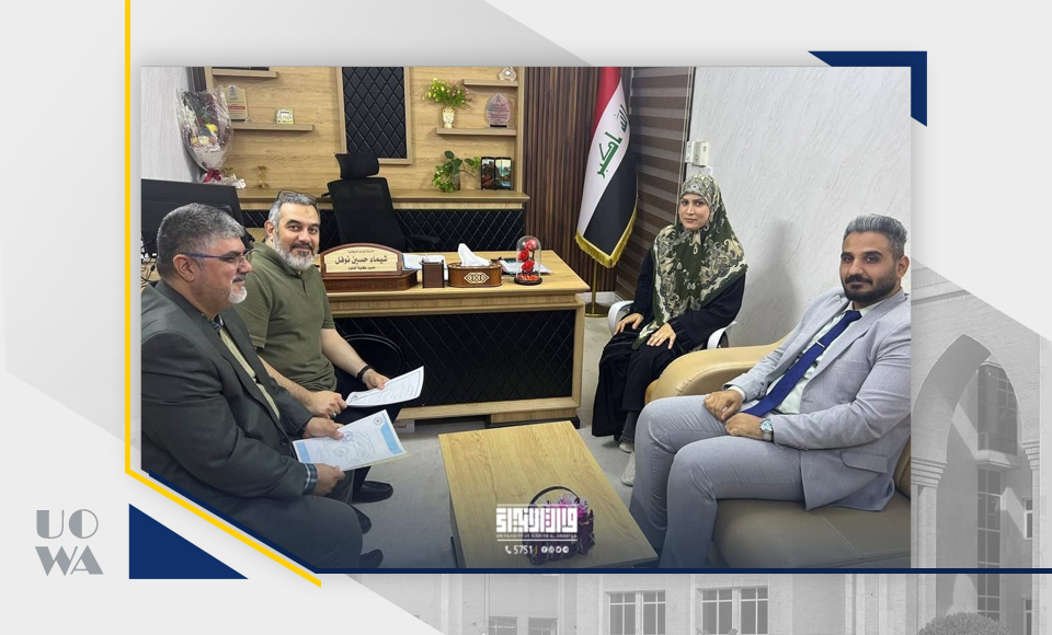 As part of its efforts to enhance academic and administrative partnership, the Assistant to the President of the University of Warith Al-Anbiyaa for Scientific Affairs, Professor Waqed Al-Moussawi, received Professor Hameeda Idan Al-Fatlawi, Dean of the College of Education for Pure Sciences at the University of Karbala, along with her accompanying delegation.