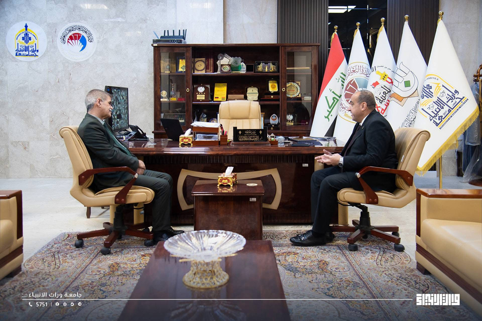 The President of Warith Al-Anbiyaa University, Professor Dr Ibrahim Saeed Al-Hayyawi, honoured Professor Dr Abdul Kareem Abdullah Mahmoud, Head of the Community Medicine Branch at the College of Medicine, on the occasion of his being awarded the title of Distinguished Professor, in recognition of his outstanding academic career and his scholarly contributions to medical education and scientific research.