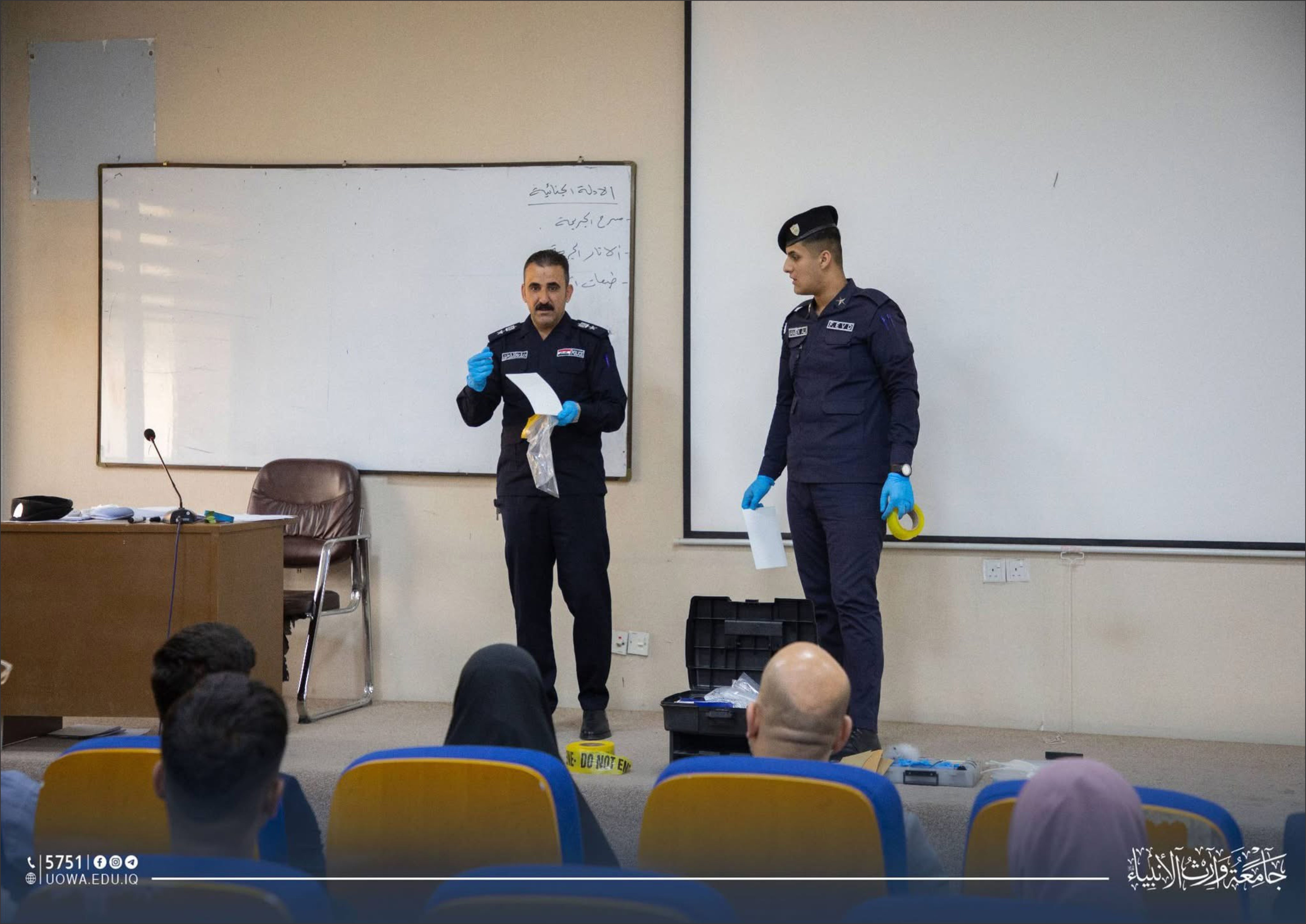 The College of Science / Department of Forensic Evidence organized a specialized scientific workshop entitled “Preserving the Crime Scene,” delivered by Lieutenant Colonel Haider Abdul Hamza Al-Fatlawi, with the attendance of a number of faculty members and students of the department.