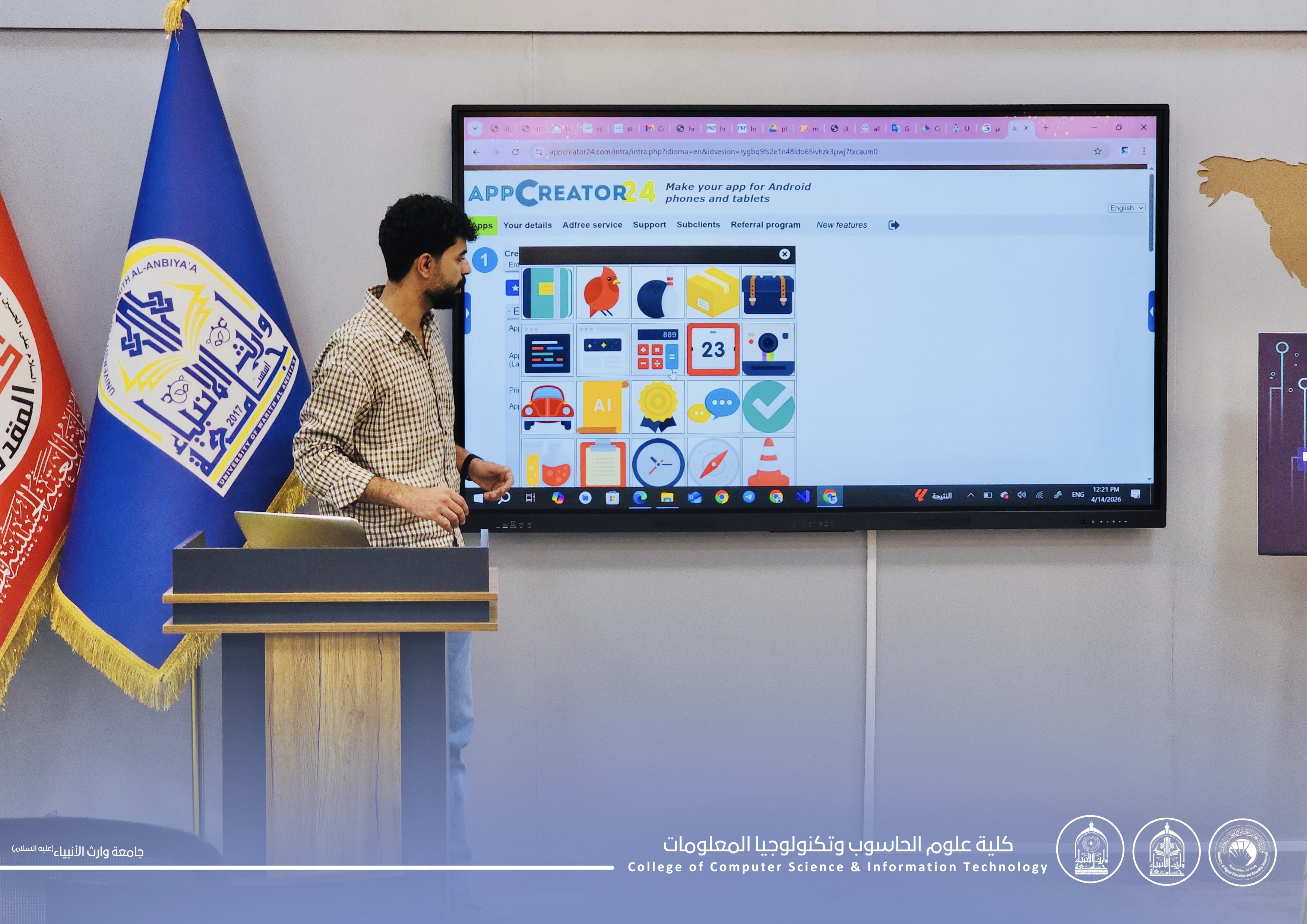 , students from the Cybersecurity Department conducted scientific workshops for their peers titled: "How to Create Mobile Applications Without Code" and "The Difference Between Data Security and Cybersecurity." This initiative aims to exchange knowledge and keep pace with rapid technological advancements.