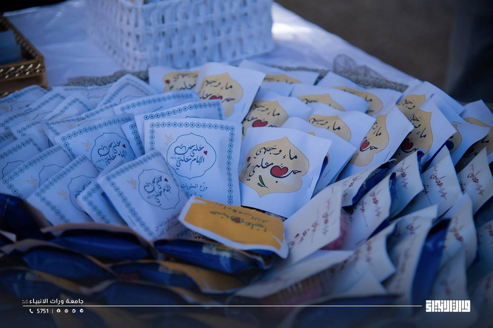 On the occasion of the blessed anniversary of the birth of the Commander of the Faithful, Imam Ali ibn Abi Talib , students of Warith Al-Anbiyaa University took the initiative to commemorate this auspicious event through a symbolic activity. The initiative included the distribution of sweets and the presentation of brief accounts and selected quotations from his noble life within the university campus, with the aim of promoting the human and ethical values embodied by Imam Ali (peace be upon him), including justice, knowledge, and service to humanity.