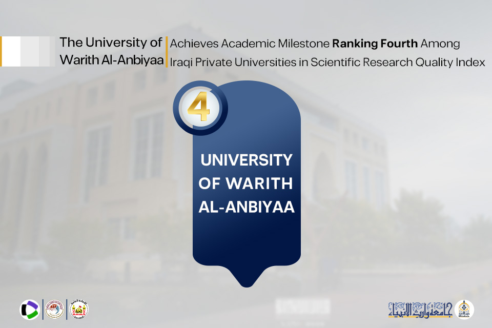The University of Warith Al-Anbiyaa has achieved a significant academic milestone in the 2026 Times Arab University Rankings, earning first place among Iraqi private universities and third place nationwide. This accomplishment clearly reflects the University’s continued progress in educational quality, scientific research, and academic openness.
