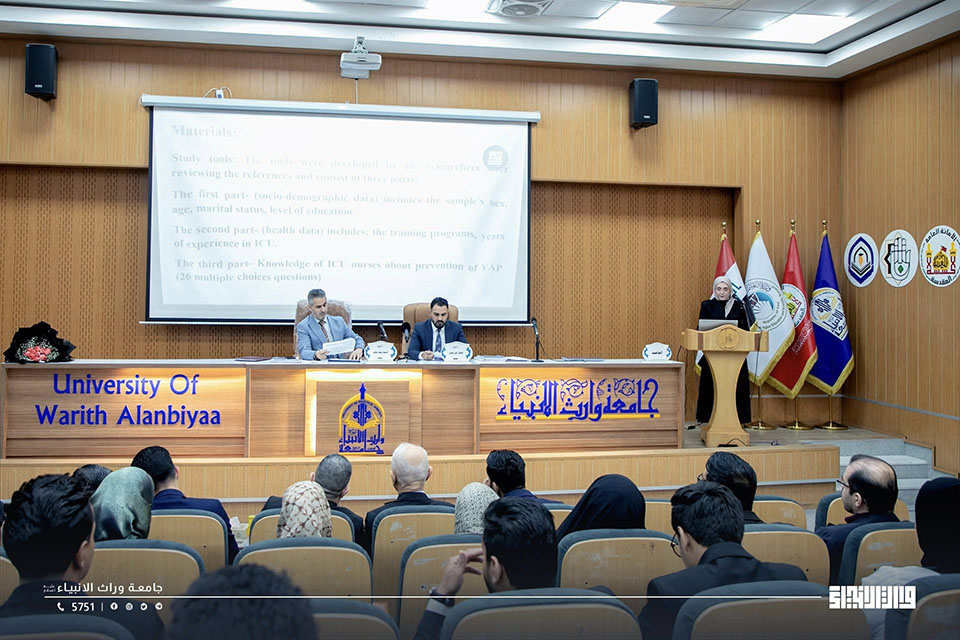 برعاية السيد رئيس جامعة وارث الأنبياء (ع)، الأستاذ الدكتور إبراهيم سعيد الحياوي، وبحضور مساعد رئيس الجامعة للشؤون الإدارية الأستاذ الدكتور نوفل الأعرجي، أقامت عمادة كلية التمريض مؤتمر وارث التمريضي الأول، الذي خُصص لمناقشة بحوث تخرج طلبة المرحلة الرابعة، بحضور لجنة علمية متخصصة شكلتها العمادة لهذا الغرض.