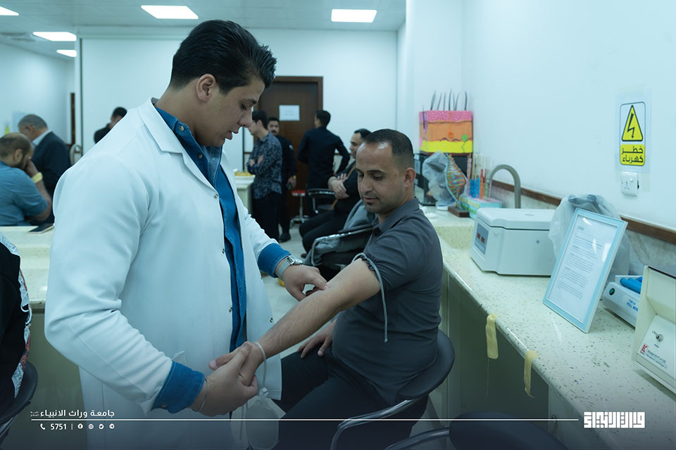 نظّمت كلية العلوم في جامعة وارث الأنبياء (عليه السلام)، بالتعاون مع دائرة صحة كربلاء المقدسة / مصرف الدم، حملة إنسانية للتبرع بالدم، شارك فيها عدد من منتسبي الجامعة وطلبتها، في بادرة تهدف إلى تعزيز روح التكافل المجتمعي وترسيخ القيم الإنسانية النبيلة.