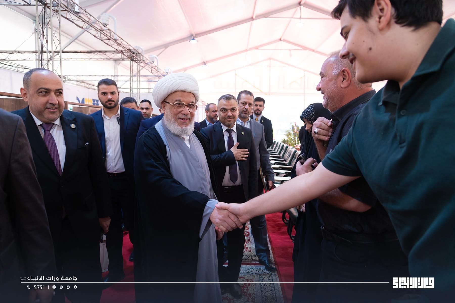 ممثلُ المرجعيةِ الدينيةِ العليا، سماحة الشيخ عبد المهدي الكربلائي (دام عزّه)، يزورُ خيمةَ التسجيل في جامعةِ وارث الأنبياء (ع) ويلتقي بعوائلِ الطلبة.