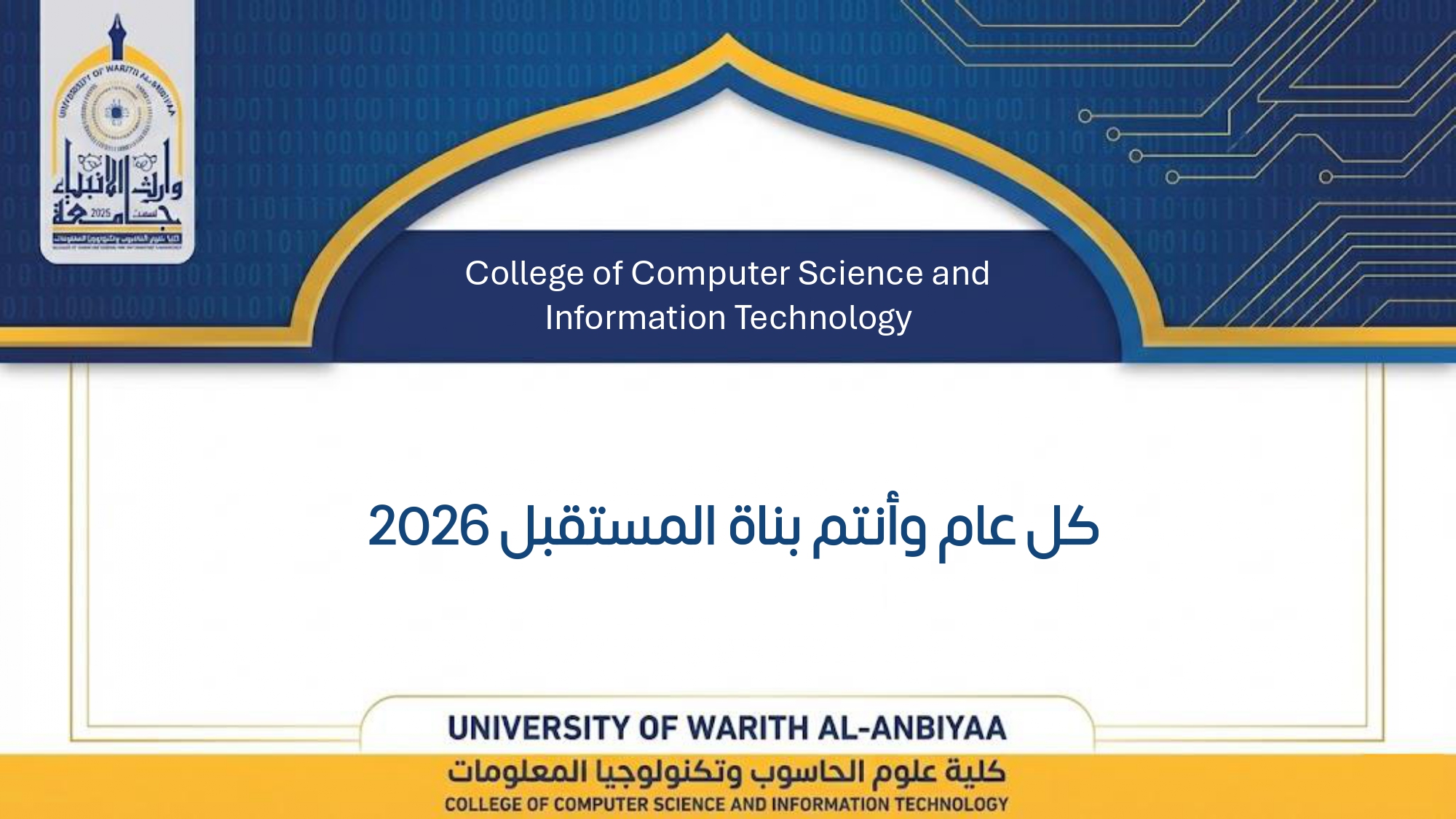 بمناسبة العام الجديد, نهنئ طلبتنا الأعزاء ونتمنى لهم عاماً مليئاً بالتحصيل العلمي المتميز والإنجازات التي تليق بطموح. كل عام وأنتم بناة المستقبل.