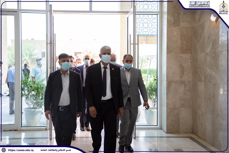 زارت اللجنة الوزارية الخاصة بمتابعة الامتحانات النهائية والمؤلفة من عدد من استاذة جامعة كربلاء برئاسة السيد رئيس جامعة كربلاء الاستاذ الدكتور باسم خليل السعيدي جامعة وارث الانبياء (عليه السلام) لمتابعة الامتحانات الحضورية في الجامعة ، إذ تجولت اللجنة برفقة السيد رئيس هيئة التعليم الجامعي في العتبة الحسينية المقدسة الدكتور افضل الشامي والسيد رئيس الجامعة/وكالة الاستاذ الدكتور عباس الدعمي في اروقة الجامعة وقاعاتها الامتحانية واطلعت على ما وفرته الجامعة من مستلزمات الامتحانات وحسب التعليمات الوزارية بالاضافة الى الاجرائات الوقائية والتباعد الاجتماعي ، كما زارت اللجنة غرف اللجان الامتحانية في كليات واقسام الجامعة واطلعت على آلية العمل فيها من خلال استمارة تقييم خاصة أعدتها الوزارة.