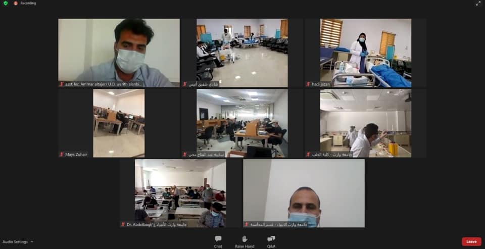 اطلع الفريق الوزاري المكلف بمتابعة الامتحانات الحضورية والإلكترونية على سير الامتحانات في جامعة وارث الانبياء(عليه السلام) ، اذ التقى الوفد الكترونياً بالسيد رئيس الجامعة/ وكالة الاستاذ الدكتور عباس الدعمي والسيد عميد كلية الهندسة الاستاذ المساعد الدكتور رؤوف محمد ، حيث تفقد الفريق الوزاري القاعات الامتحانية واطلع على عملية فتح الاسئلة الامتحانية وتحدث مع الطلبة وطرح بعض الاسئلة عليهم