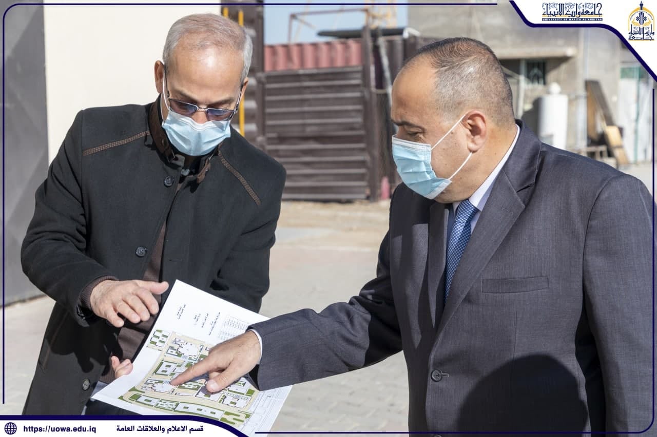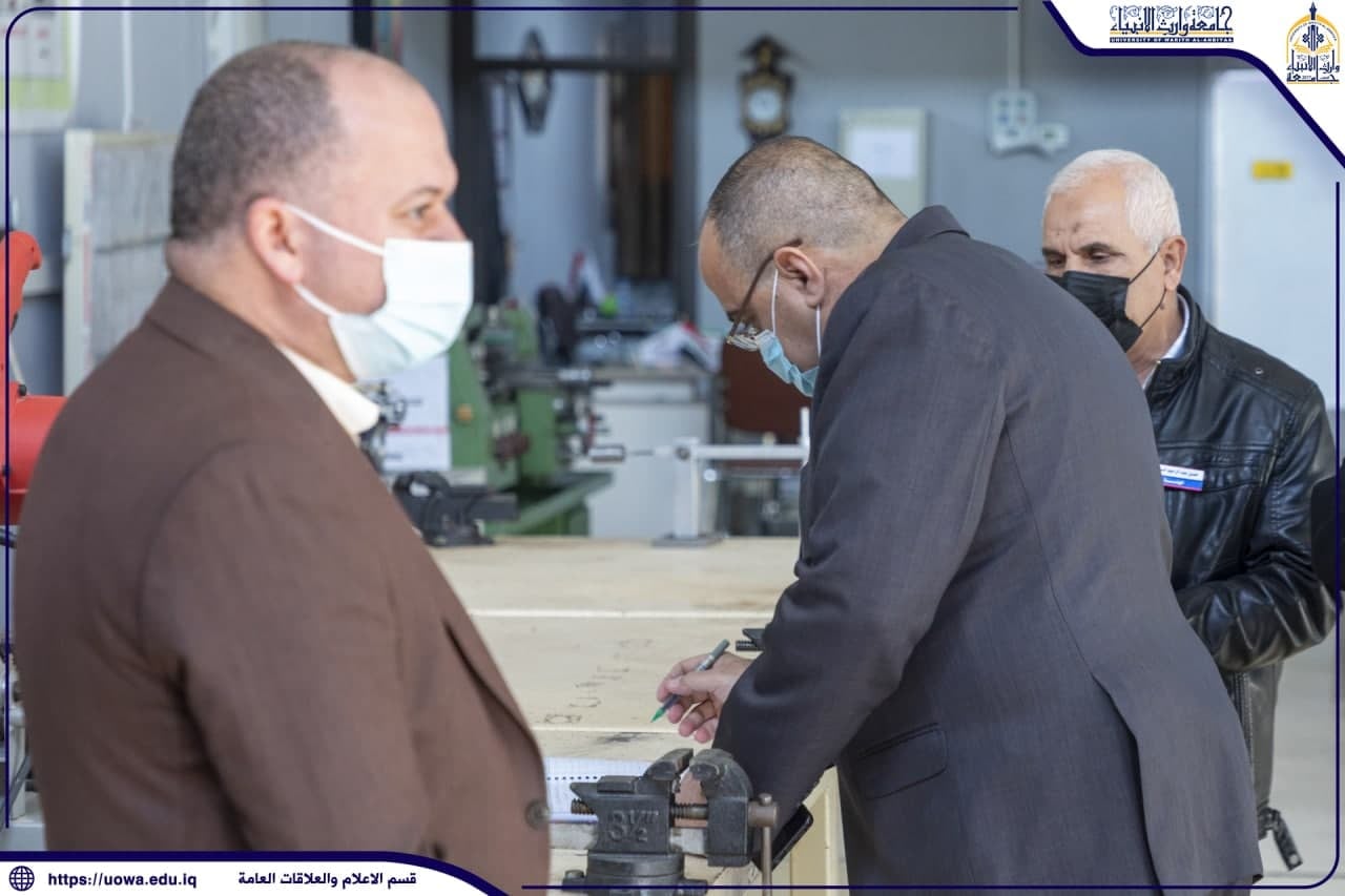 جانب من جولة السيد رئيس الجامعة الاستاذ الدكتور ابراهيم سعيد الحياوي يرافقه السيد المساعد العلمي الاستاذ الدكتور عباس الدعمي لمتابعة سير العملية التعليمية في كليات وأقسام الجامعة