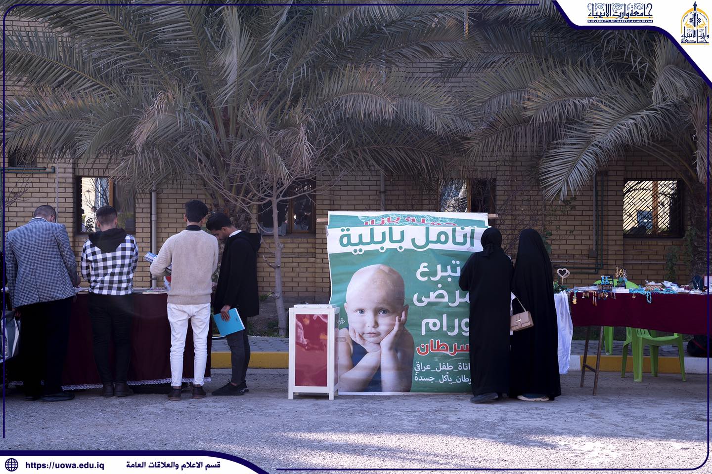 برعاية السيد رئيس الجامعة الاستاذ الدكتور ابراهيم الحياوي اقام قسم النشاطات الطلابية وبالتعاون مع فريق انامل بابلية بازار خيري لدعم الاطفال الراقدين في مشفى الامراض السرطانية
