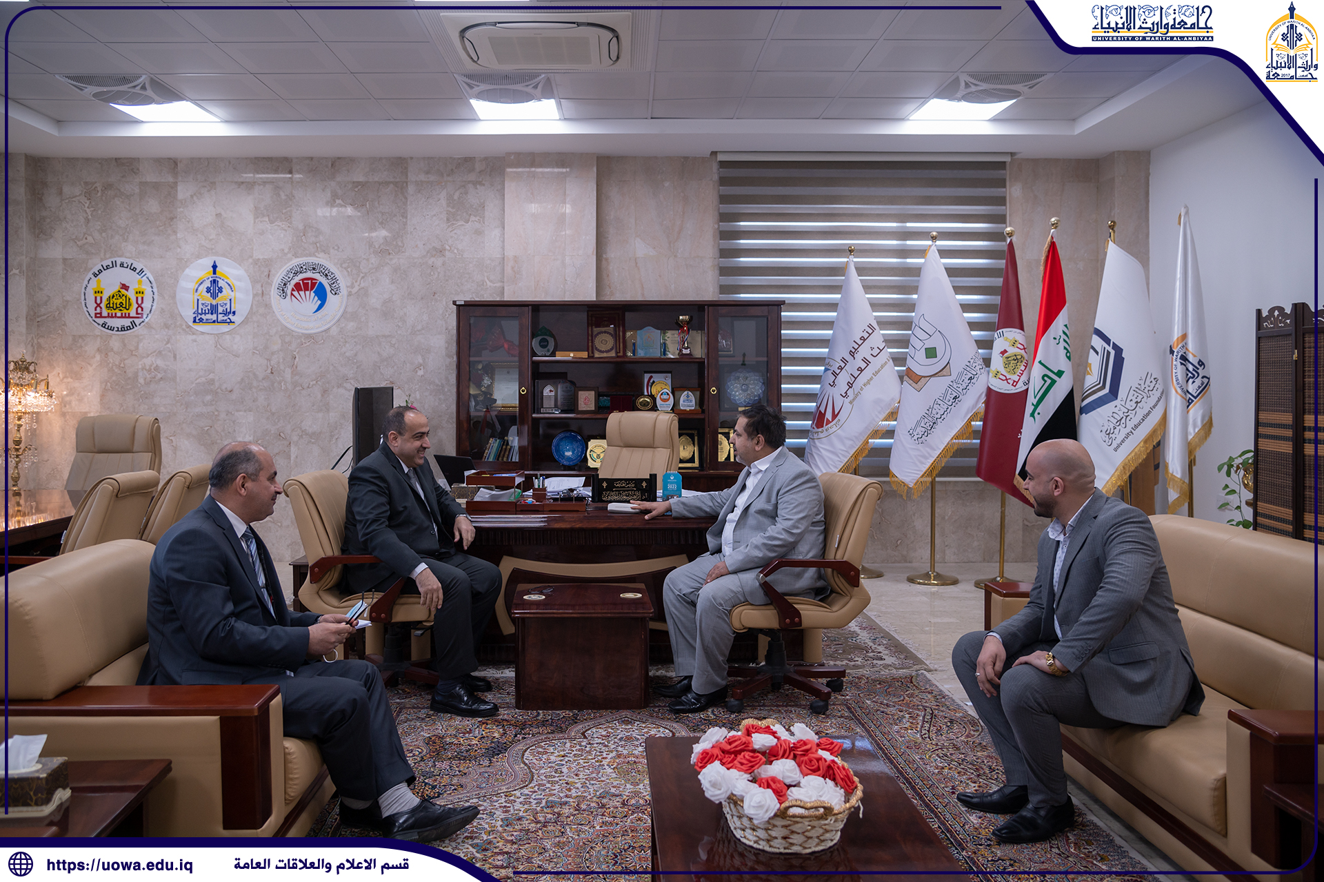 لغرض الإطلاع على سير الامتحانات الالكترونية والحضورية ،استقبلت السيد رئيس جامعة وارث الانبياء(عليه السلام) الاستاذ الدكتور ابراهيم الحياوي