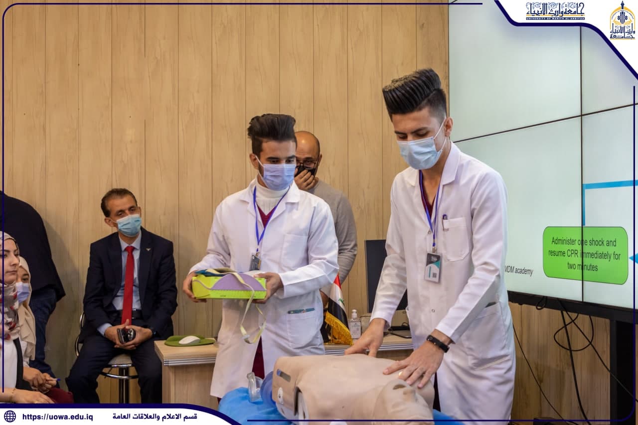 بحضور سماحة المتولي الشرعي للعتبة الحسينية المقدسة الشيخ عبد المهدي الكربلائي (دام عزه) والسيد رئيس الجامعة الاستاذ الدكتور ابراهيم الحياوي، أقامت كلية الطب وبإشراف هيئة الصحة والتعليم الطبي في العتبة الحسينية المقدسة، ورشة عمل لطلبة الكلية بعنوان (أساسيات انقاذ الحياة) ضمن المتطلبات العلمية لتطوير مهارات طلبة كلية الطب عبر الاستعانة بمدربين من أكاديمية طب الحشود والطوارئ.