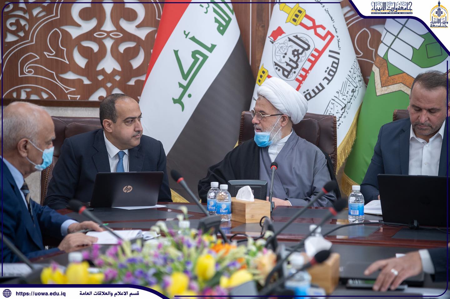 خلال زيارته الى جامعة وارث الانبياء(عليه السلام) اجتمع سماحة الشيخ عبد المهدي الكربلائي(دام عزه) برئاسة جامعتي وارث الانبياء والزهراء، يرافقه الامين العام للعتبة المقدسة السيد حسن رشيد العبايجي، لبحث اخر التطورات والمستجدات العلمية، حرصاً من سماحته على مواكبة الامور العلمية والادارية للجامعتين، وسعياً للنهوض بواقع التعليم العالي من خلال جعل مخرجات الجامعتين بالمستوى المتميز.