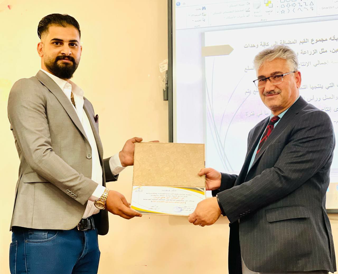 وقدم الندوة كل من الطلبة (امير هاني مزبان، زيد فيصل حسين) بإشراف رئيس القسم م.د محمد مجيد الحمداني، وبحضور مجموعة من الاساتذة وطلبة القسم الذين أشادوا بطريقة تقديمهم وتمكنهم من موضوع الندوة.