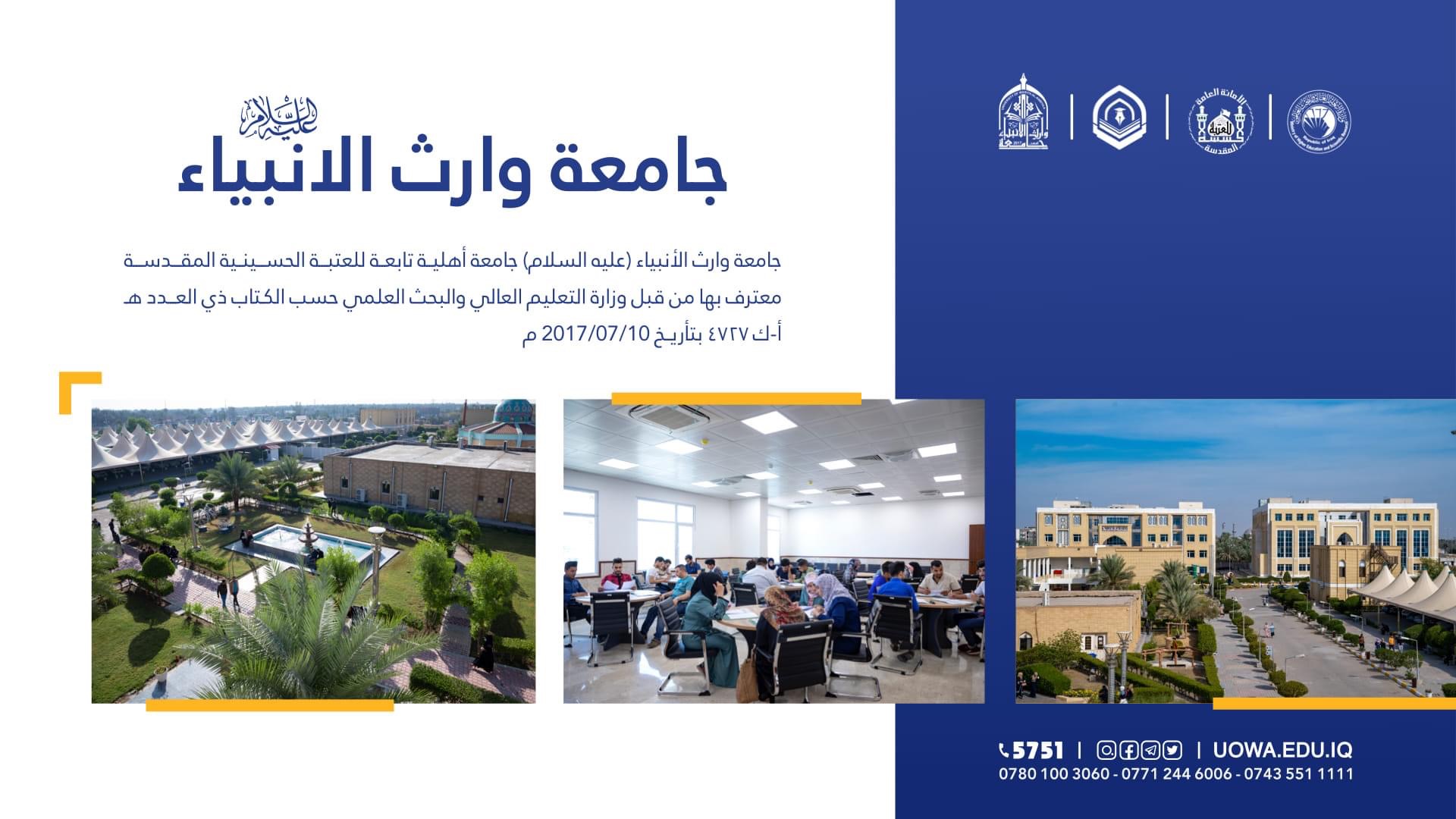 يسر جامعة وارث الانبياء(عليه السلام) أن تعلن للطلبة الاعزاء الراغبين ببدء اولى خطواتهم في طريق النجاح عبر التقديم على كليات واقسام الجامعة، (2022-2023)