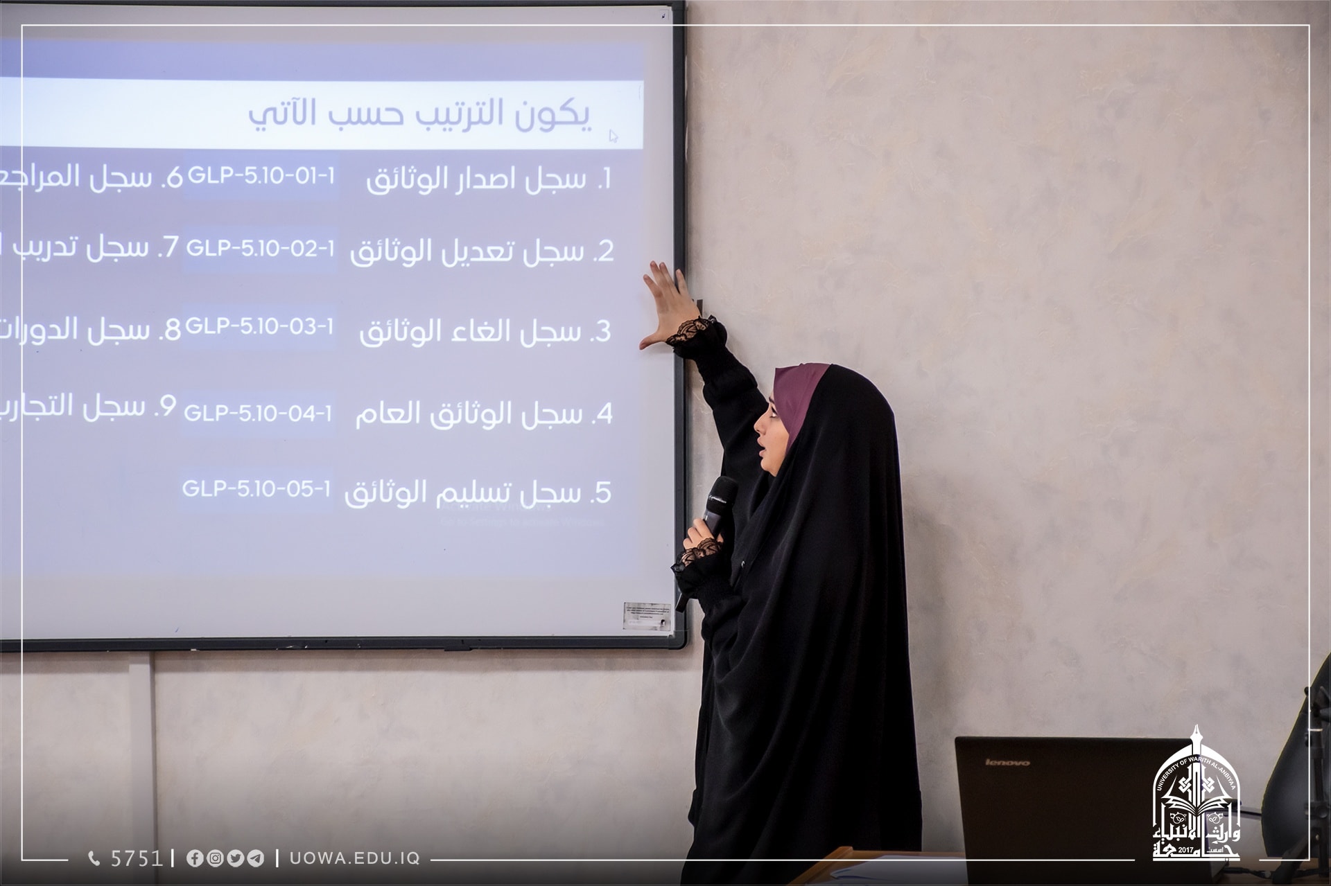 قدمها المدرس علي عبد الزهرة رئيس قسم ضمان الجودة ،ومسؤولة الاعتماد المختبري الست حوراء احمد هادي،استهدفت الملاكات العاملة في مختبرات الجامعة ، وجاءت الدورة لتدريبهم على إجراءات الجودة العالمية في مواصفات ISO 17025 وكذلك المواصفات الوزارية الخاصة بالمختبر التعليمي الجيد GLP .