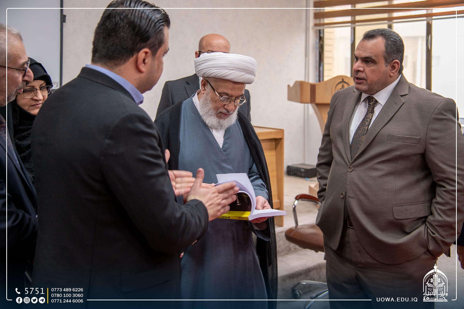 للوقوف على التطور العلمي والاكاديمي في الجامعة، تفقد سماحة المتولي الشرعي للعتبة الحسينية المقدسة الشيخ عبد المهدي الكربلائي (دام عزه)، برفقة السيد رئيس هيئة الصحة والتعليم الجامعي الدكتور ستار الساعدي جامعة وارث الانبياء(عليه السلام)، وكان باستقبالهم السيد رئيس الجامعة الاستاذ الدكتور ابراهيم الحياوي.