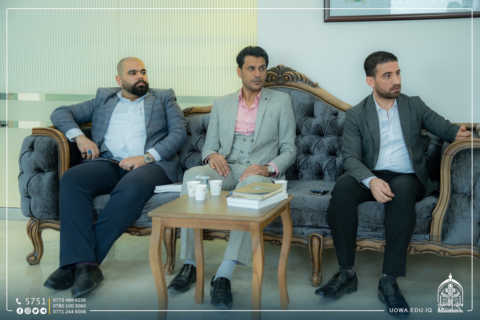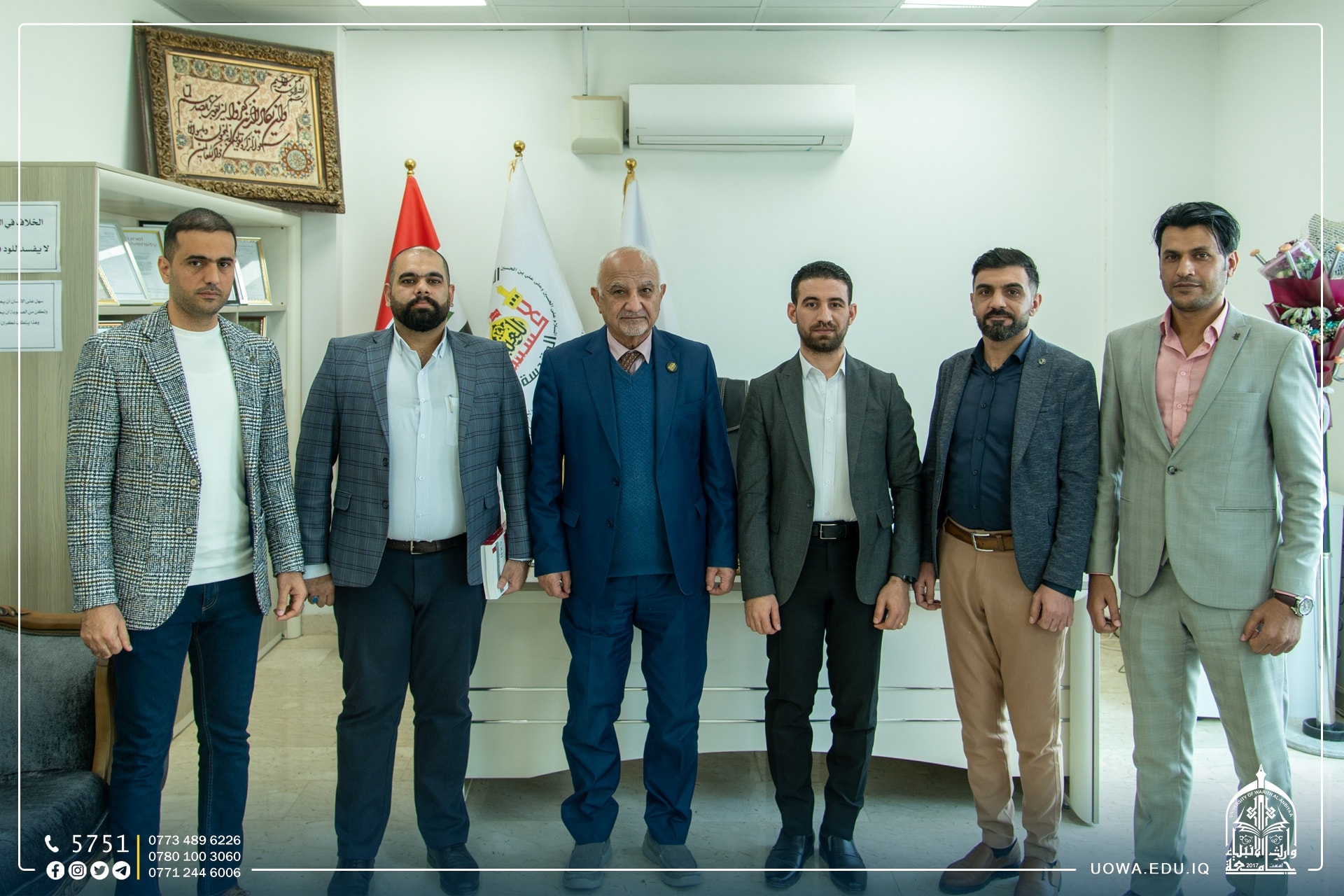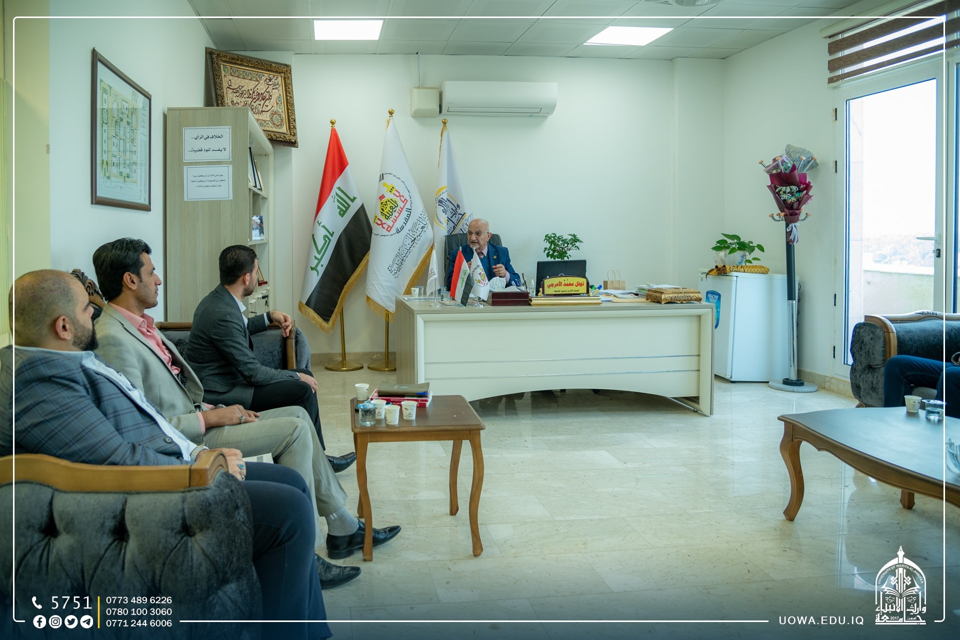 استضافت جامعة وارث الانبياء (عليه السلام ) وفد من نقابة المحاسبين والمدققين العراقية/ فرع كربلاء المقدسة لتعزيز التعاون المشترك بين الجامعة والنقابة، إذ كان باستقبالهم السيد المساعد الإداري الاستاذ الدكتور نوفل الاعرجي والسيد رئيس قسم المالية الاستاذ محمد حمود والسيد رئيس قسم التدقيق الاستاذ علاء هادي.