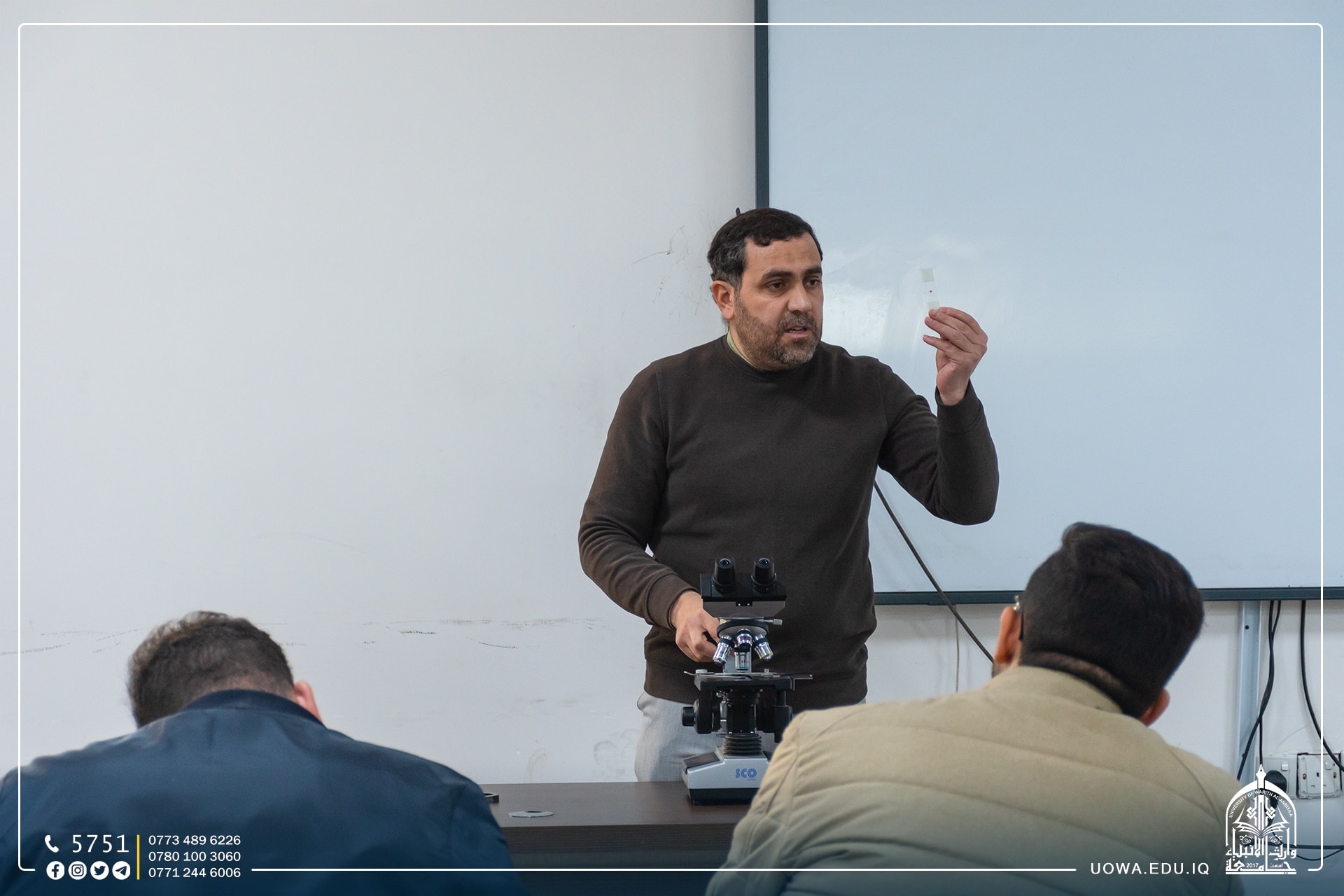 ألقاها التدريسي. م.م هاشم محمد الاعرجي لمدة ثلاثة ايام وقد تناولت الدورة ثلاثة محاور، المحور الاول تناول الاجزاء الرئيسية للمجهر الضوئي، والثاني تضمن مبدأ العمل من ناحية مصدر الضوء، أما المحور الثالث فتناول اساس عمل المجهر الضوئي من ناحية قوة التكبير والايضاح.