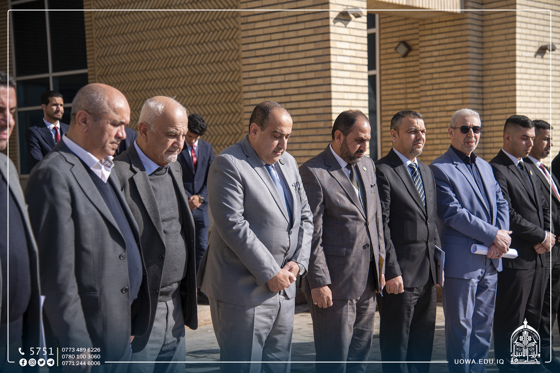 رئاسة جامعة وارث الانبياء(عليه السلام) تنظم وقفة حداد لقراءة سورة الفاتحة بمناسبة الذكرى السنوية الثالثة لاستشهاد قادة معارك النصر على التنظيمات الارهابية.