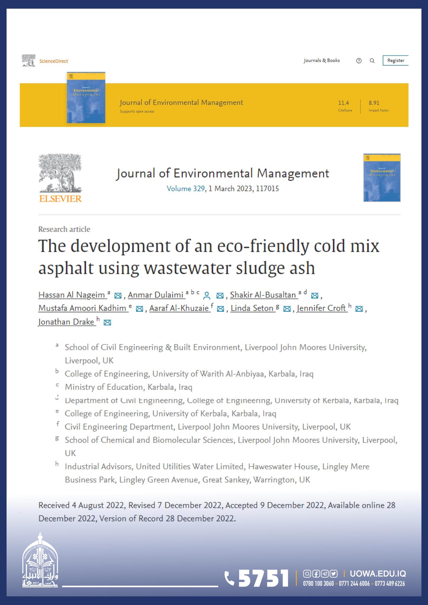 نشر الدكتور انمار فالح ديكان بالاشتراك مع الدكتور حسن النجم احد مؤسسي الجامعة