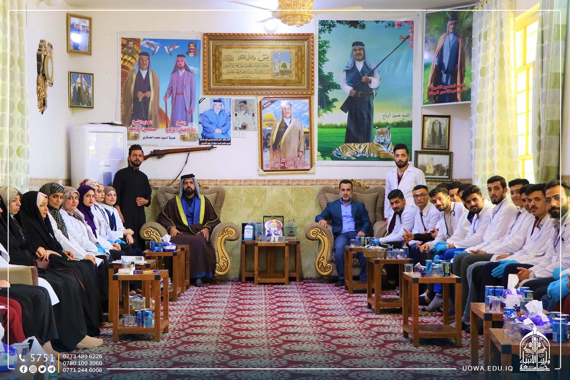 إذ تمت زيارة عشيرة الرباح وشيخهم رباح حسين الرباح، لتقديم سبل تعزيز الصحة(الطبية والتمريضية) وتقديم المبادرات في داخل الجامعة للمواطنين وأفراد العشائر المجاورة.