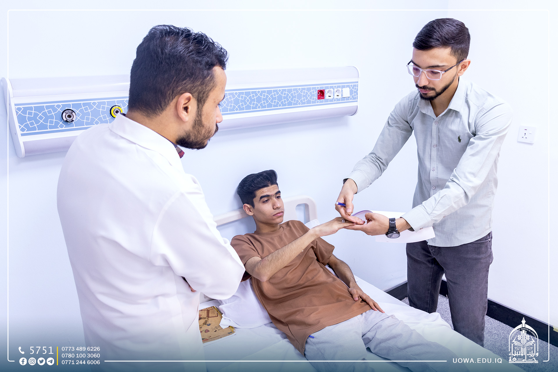 "المركز الوطني لتقييم الكفايات الطبية" في جامعة وارث الانبياء (عليه السلام) يستقبل طلبة كلية الطب لتدريبهم على اداء الفحص الاولي للحالات المرضية.