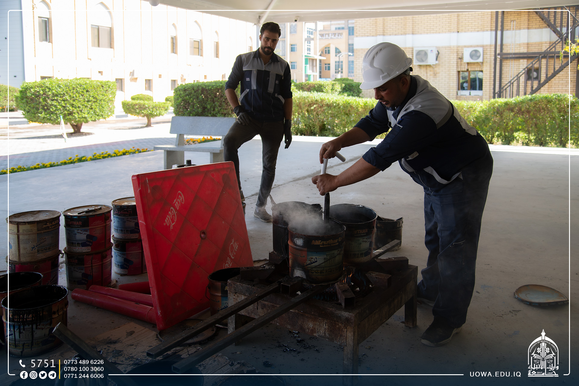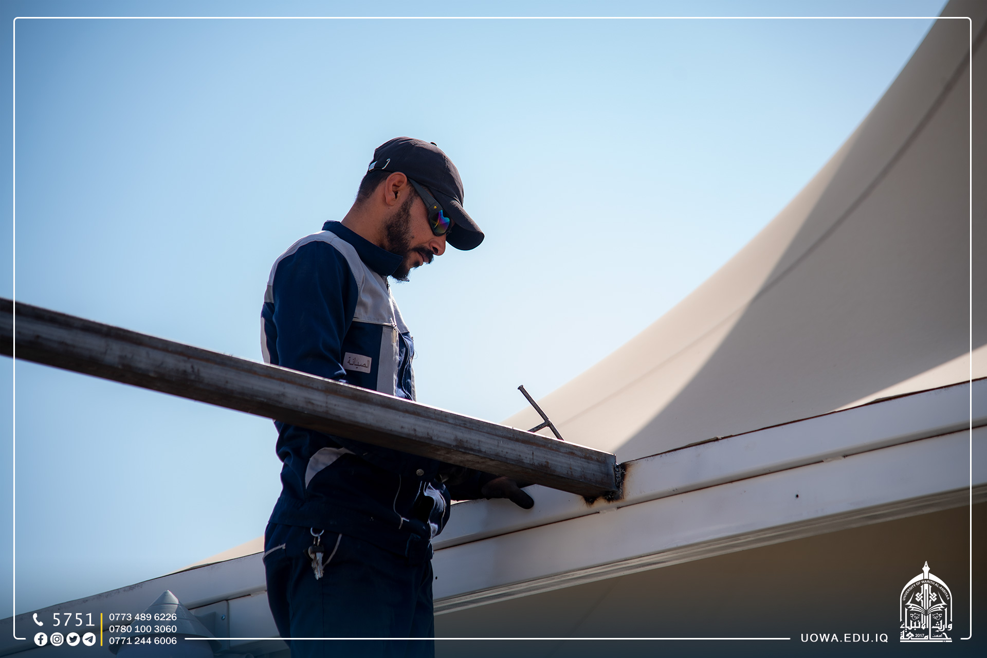 تواصل ملاكات قسم ديوان الجامعة اعمال تأهيل وصيانة مسقف الجامعة تمهيداً للمعرض السنوي الثاني لمشاريع تخرج طلبة كلية الهندسة الذي سيقام يوم السبت القادم المصادف 20/5/2023 في الساعة 9صباحاً