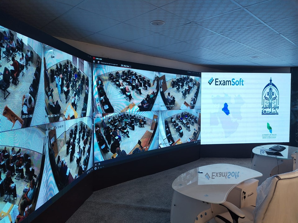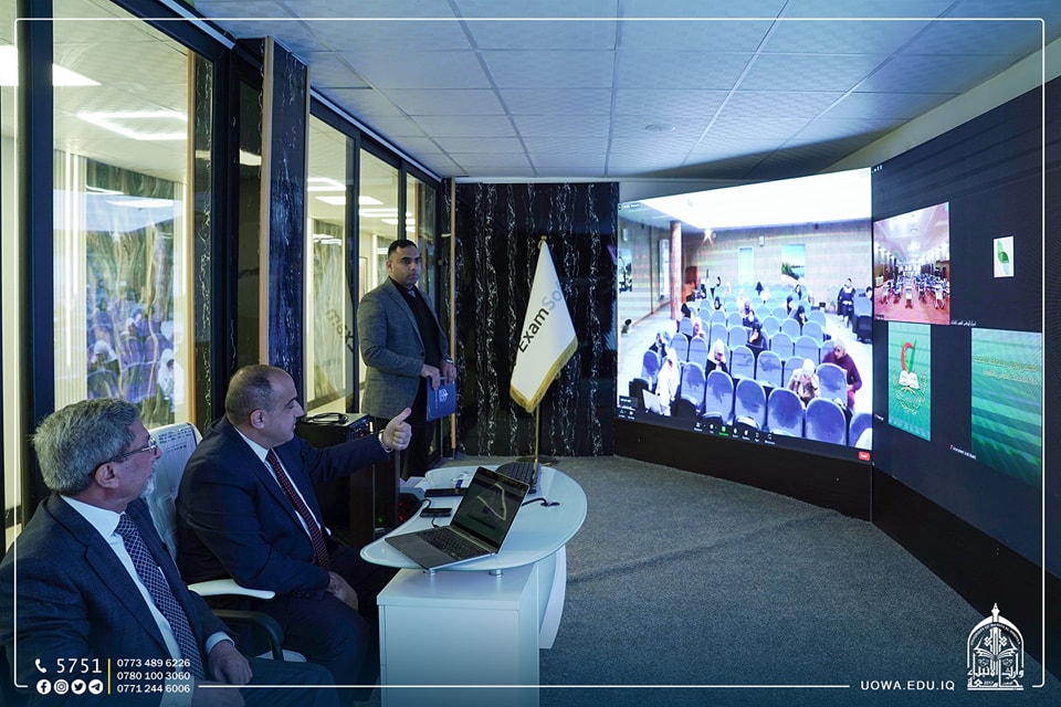 جانب مصور من متابعة رئيس الجامعة لسير امتحانات المجموعة الطبية عبر منظومة المراقبة الالكترونية في "المركز الوطني لتقييم الكفايات الطبية" ، فضلاً عن الزيارة الميدانية للقاعات الدراسية، والإيعاز بتوفير كافة المستلزمات للحافظ على إنسيابية أداء الامتحانات النهائية.