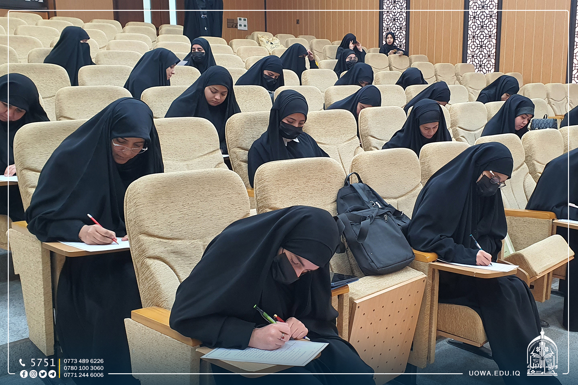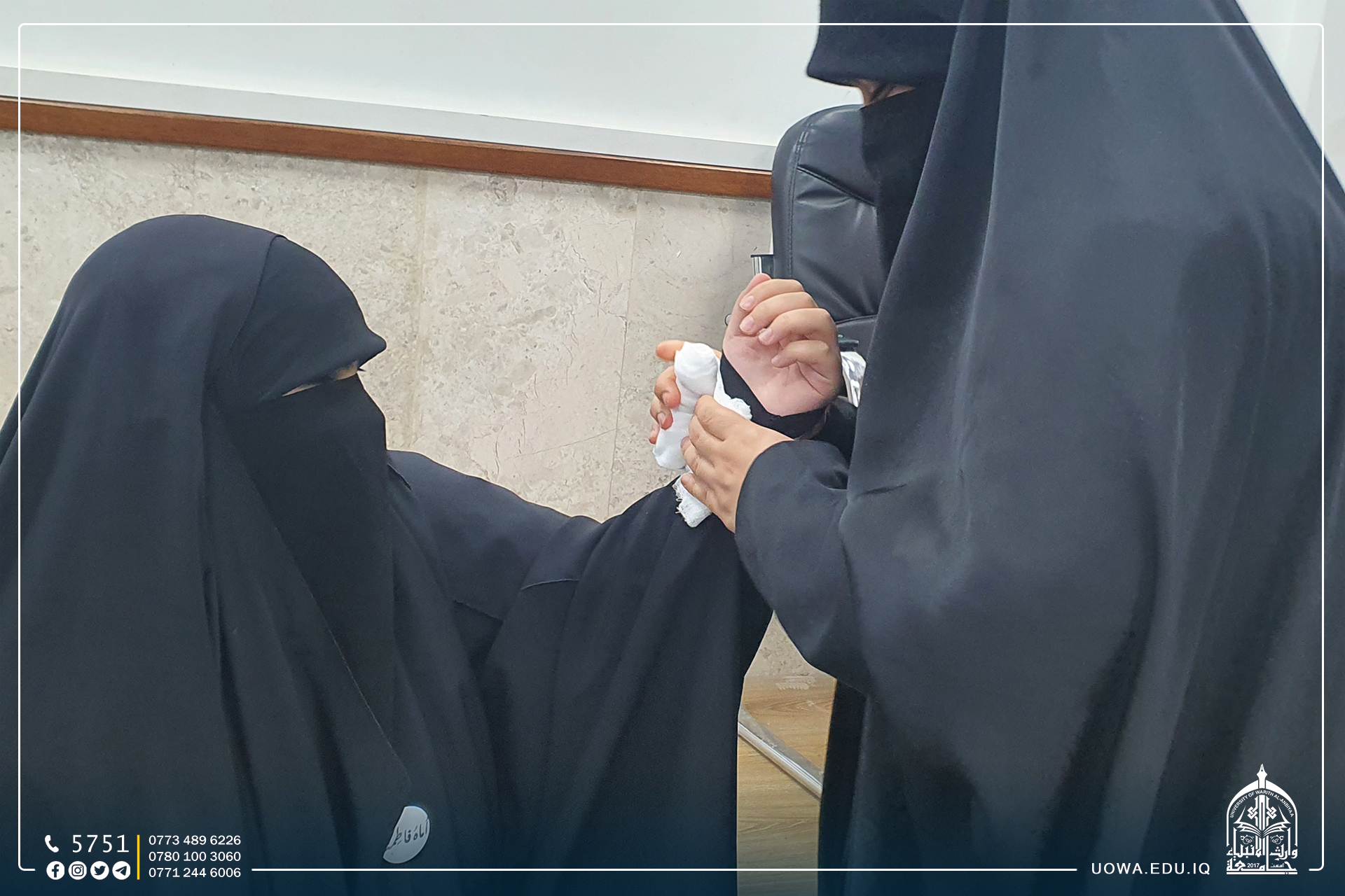 مركز التعليم المستمر في جامعة وارث الانبياء(عليه السلام) يختتم البرنامج التدريبي لفريق "رحماء بينهم" النسوي التطوعي للإسعافات الأولية خلال زيارة الاربعين، بإجراء اختبار لدورة الاسعاف الاولي المجتمعي.