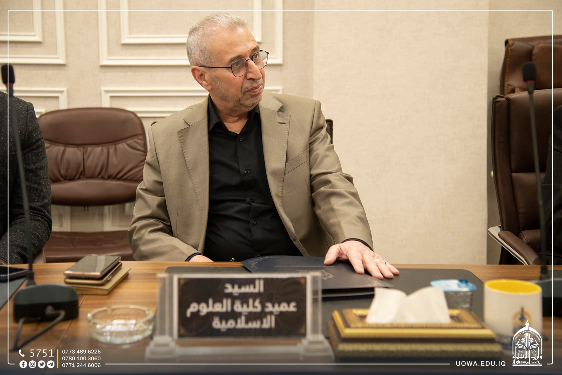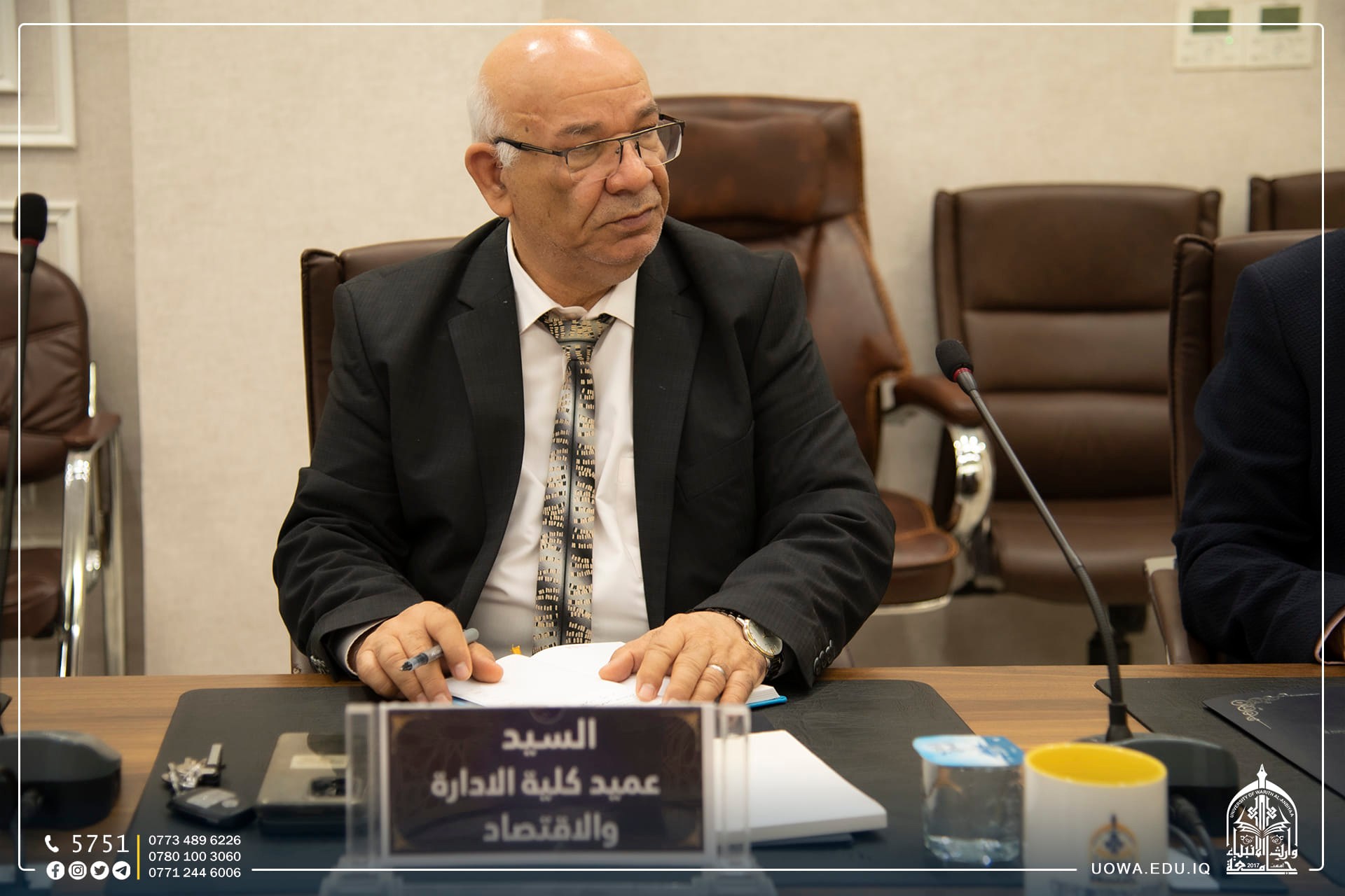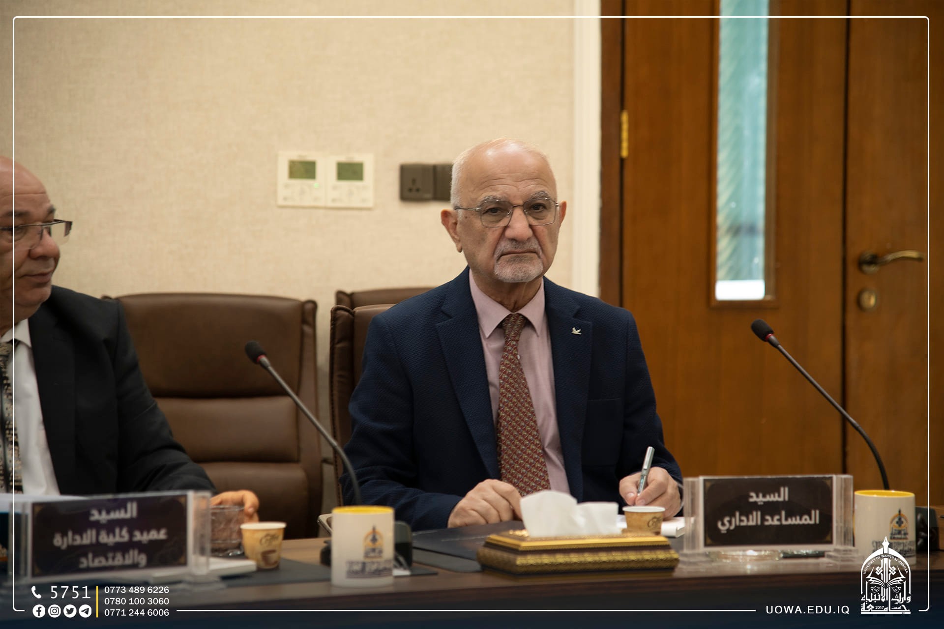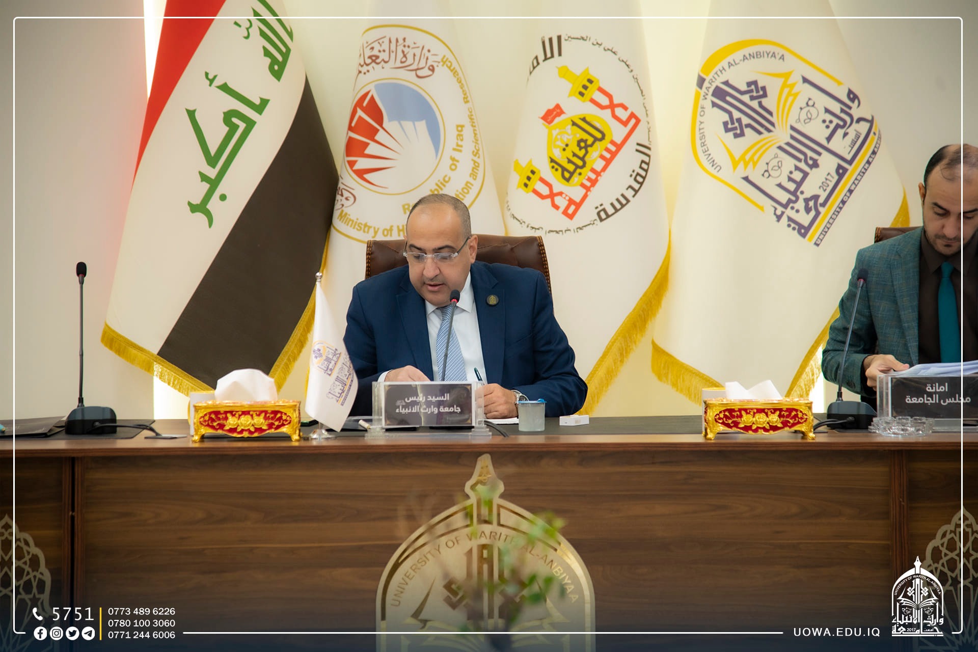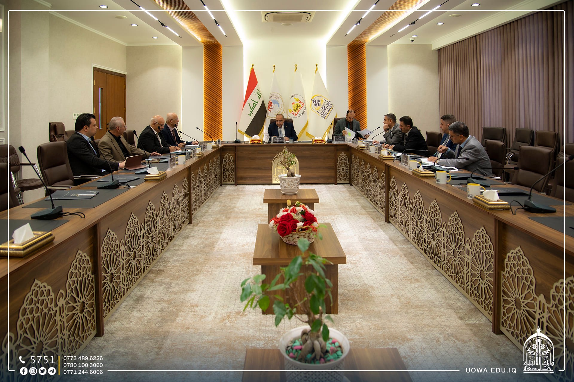 مجلس جامعة وارث الانبياء(عليه السلام) يعقد جلسته الاعتيادية برئاسة الاستاذ الدكتور ابراهيم الحياوي وعضوية السادة مساعدي رئيس الجامعة للشؤون الإدارية والعلمية والسادة عمداء الكليات لمناقشة جملة من القرارات التي تخدم الجامعة وطلبتها الاعزاء.