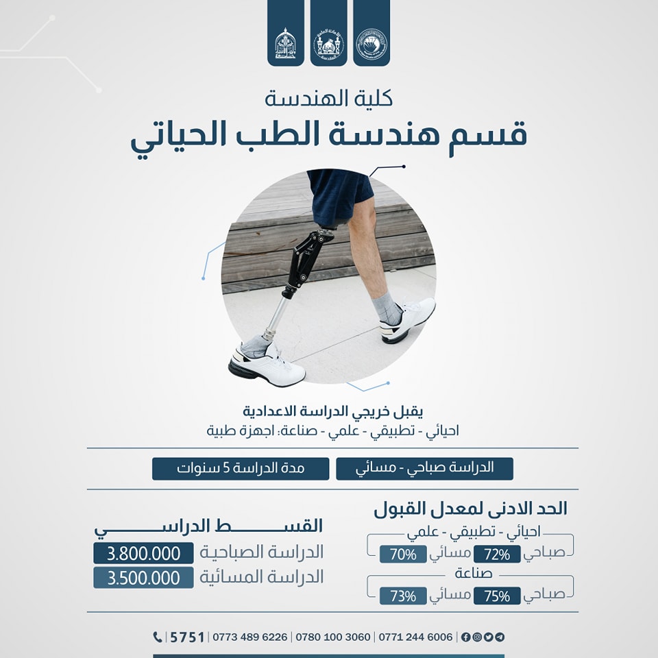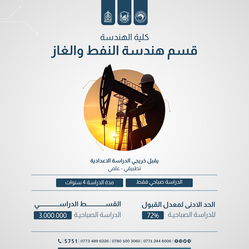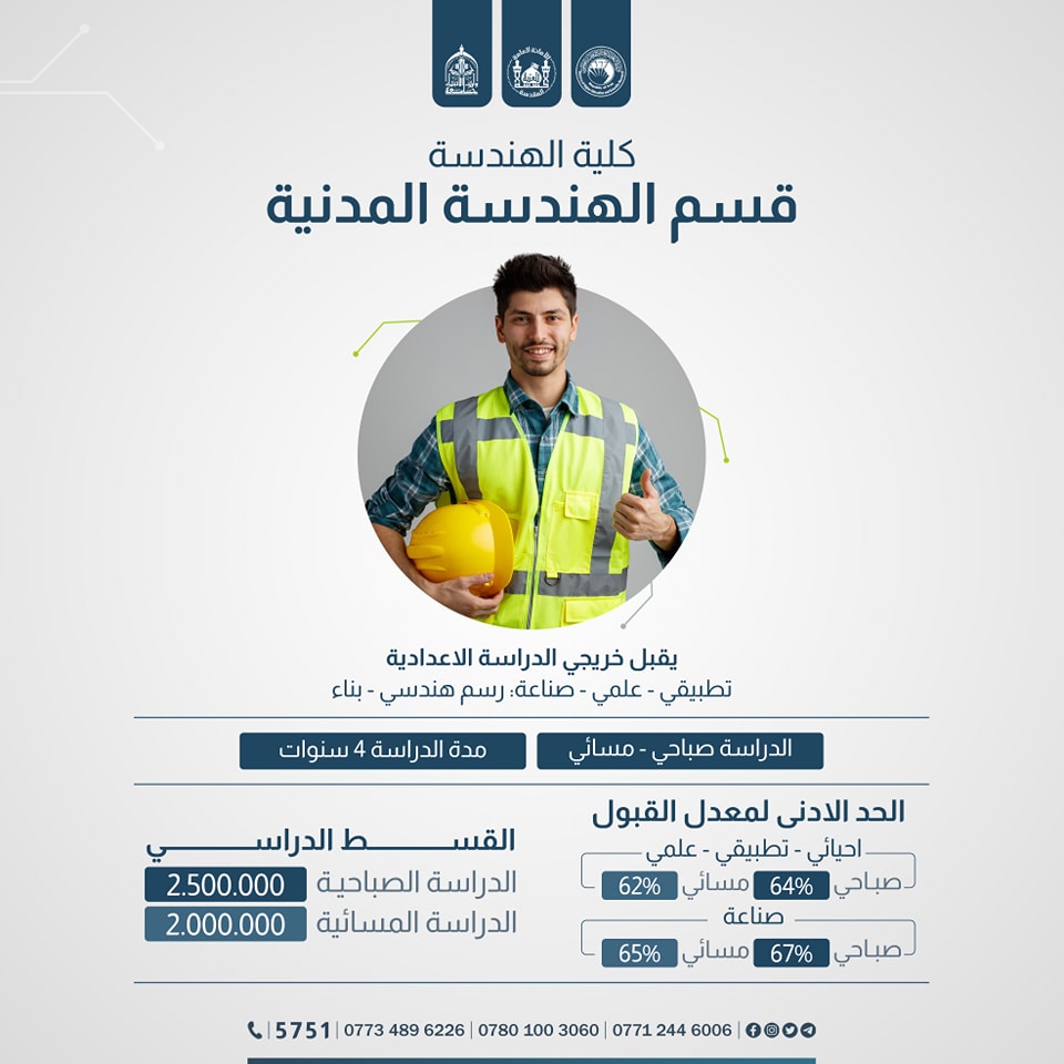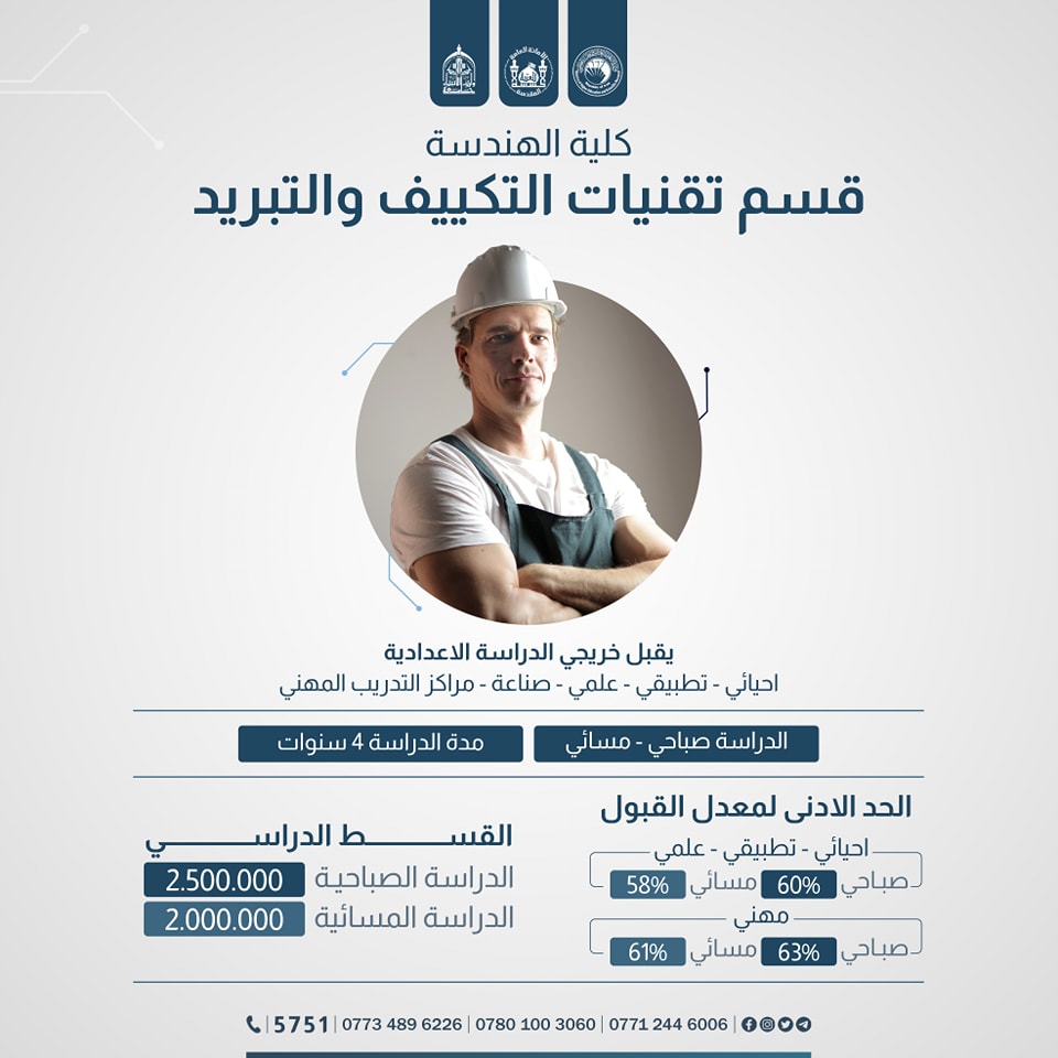 الطلبة الاعزاء الراغبين بالتقديم على كلية الهندسة في جامعة وارث الانبياء(عليه السلام)