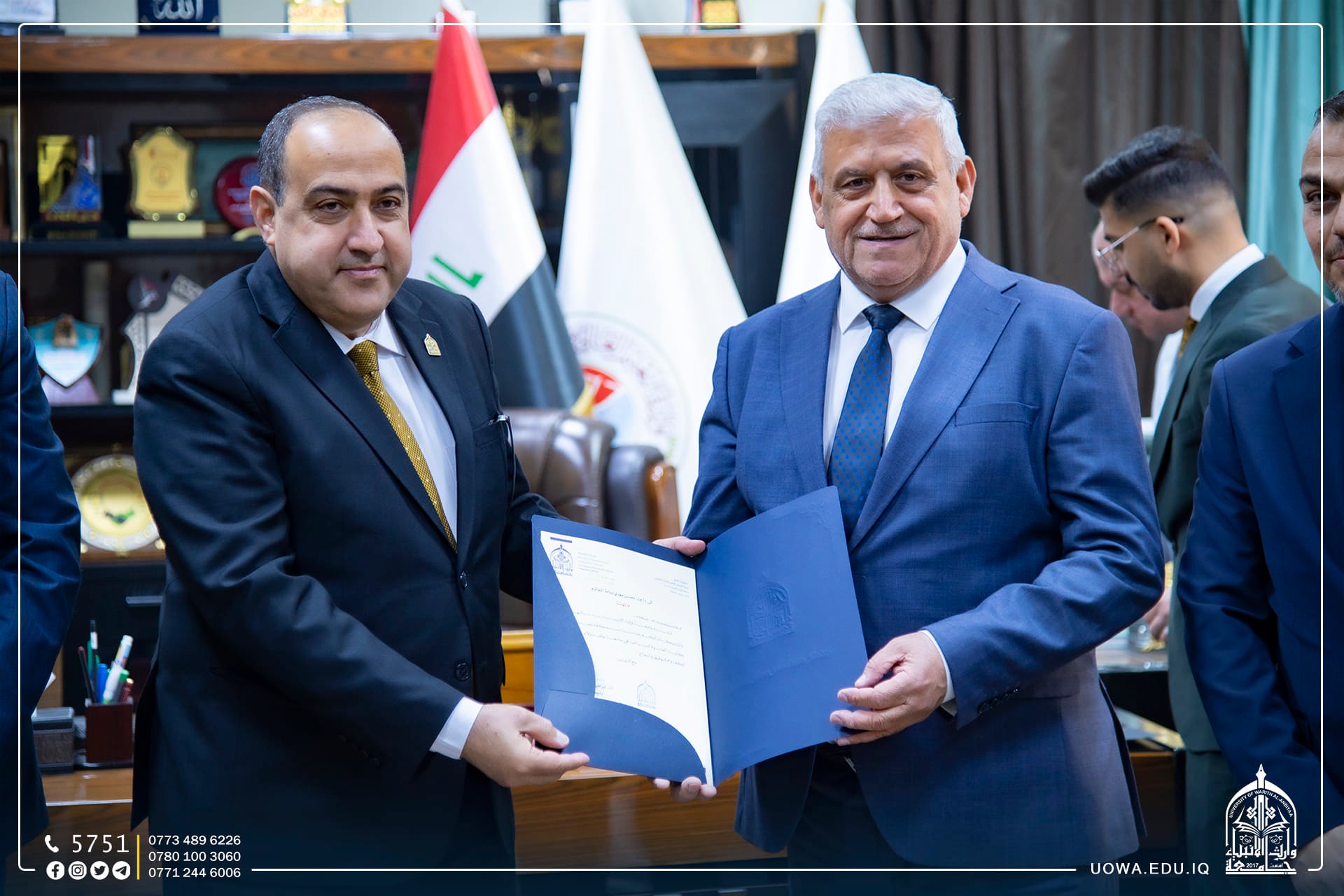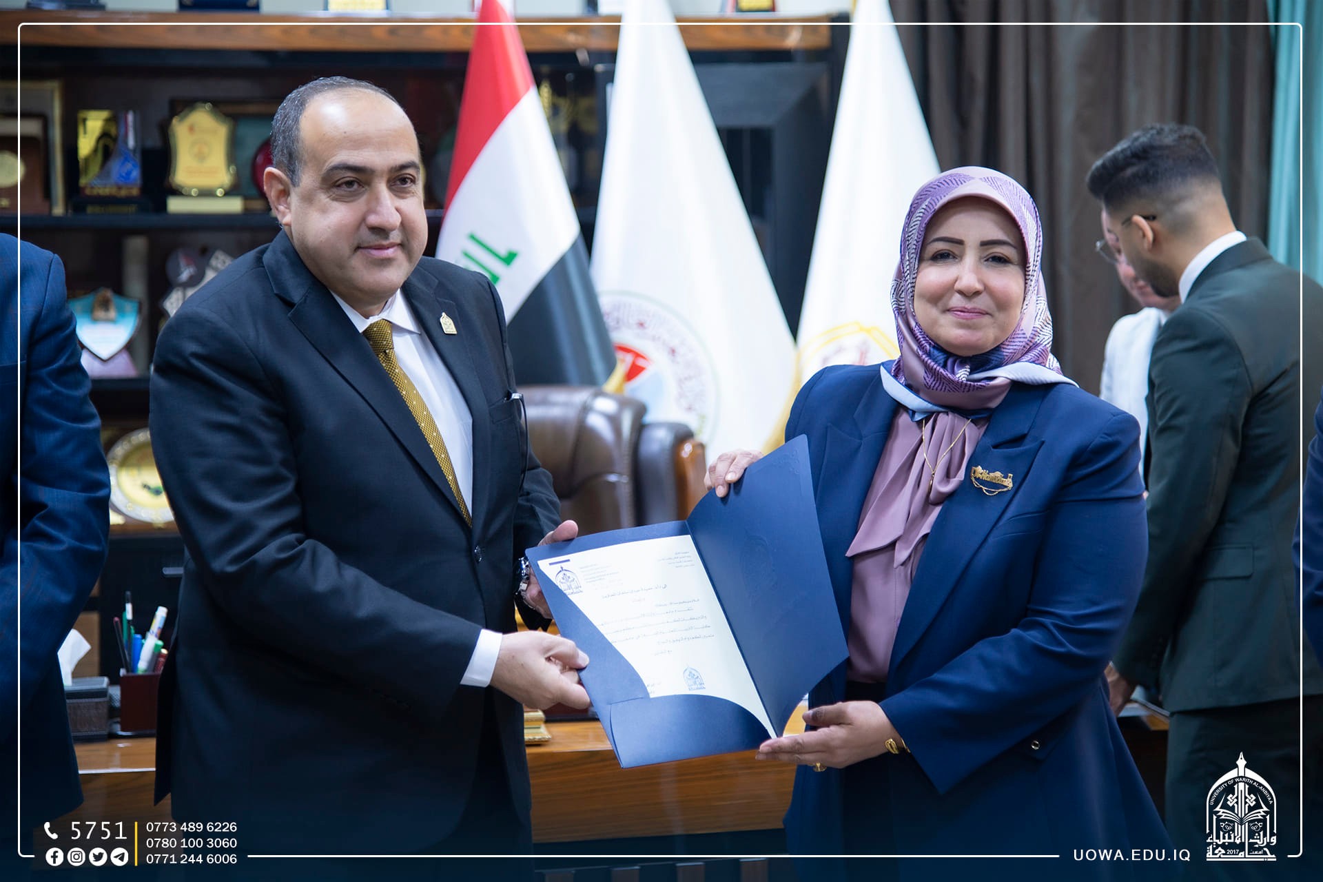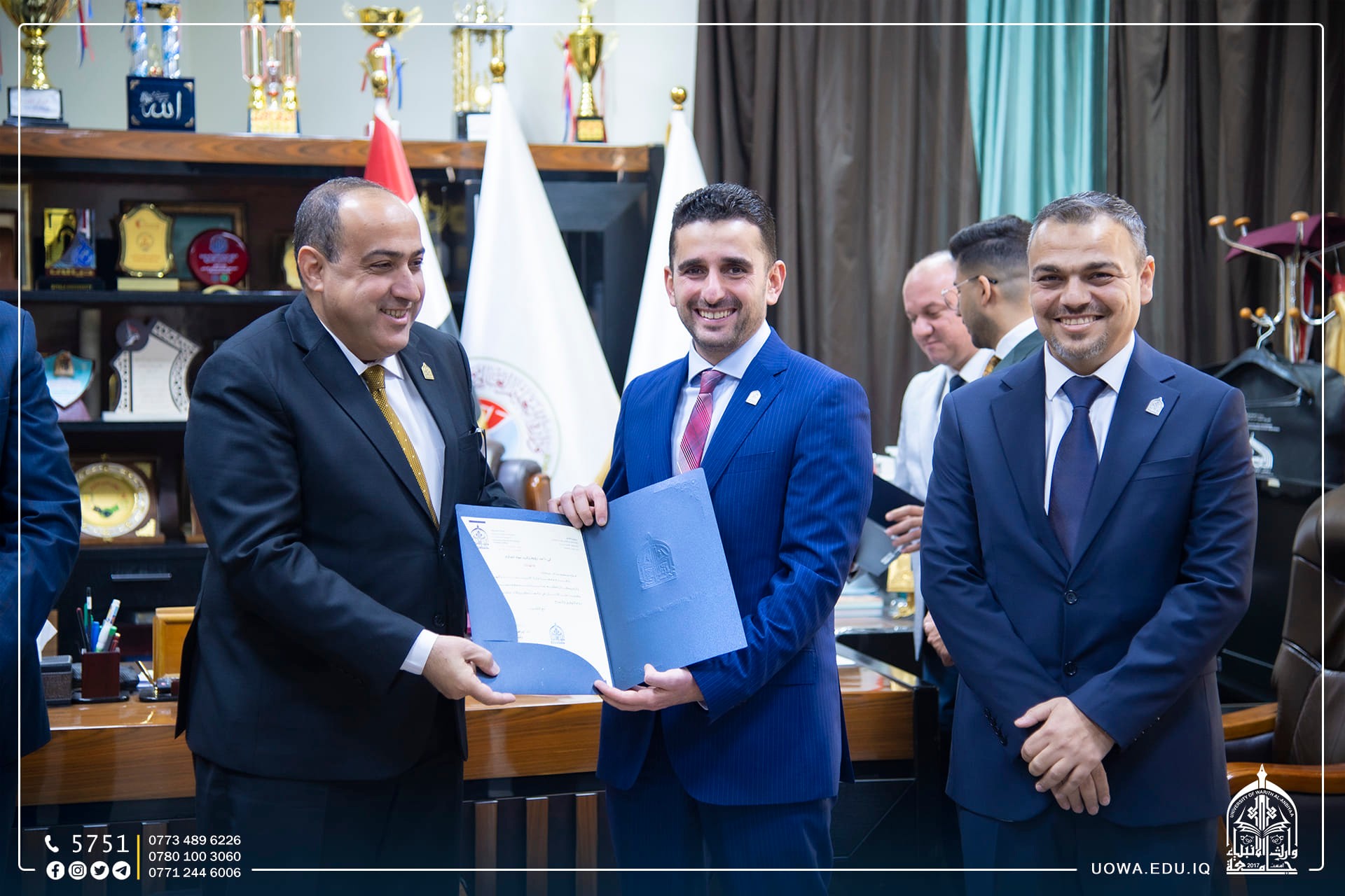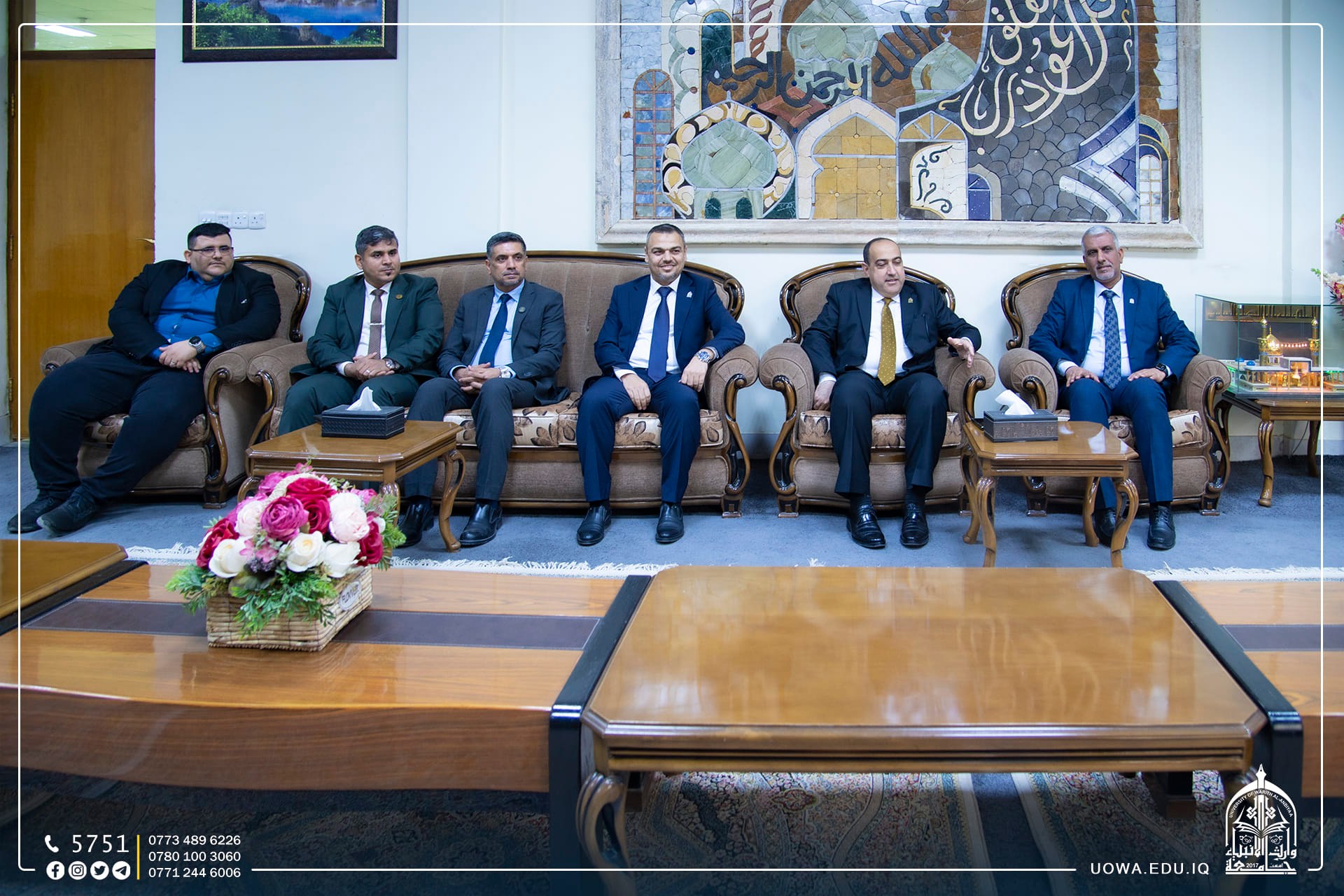 حرصا على تعزيز الاواصر العلمية والاكاديمية مع المؤسسات التعليمة ، زار رئيس الجامعة الاستاذ الدكتور ابراهيم الحياوي، والمساعد العلمي الاستاذ الدكتور واقد الموسوي،والوفد المرافق لهما ، رئاسة جامعة كربلاء لتقديم التهاني والتبريكات لتجديد الثقة لمساعدي رئيس جامعة كربلاء الإداري والعلمي، الاستاذ الدكتور اكرم الياسري، والاستاذ الدكتور نجم عبدالحسين، بالإضافة الى تهنئة عمداء الكليات الذين تسنموا مناصبهم حديثاً.