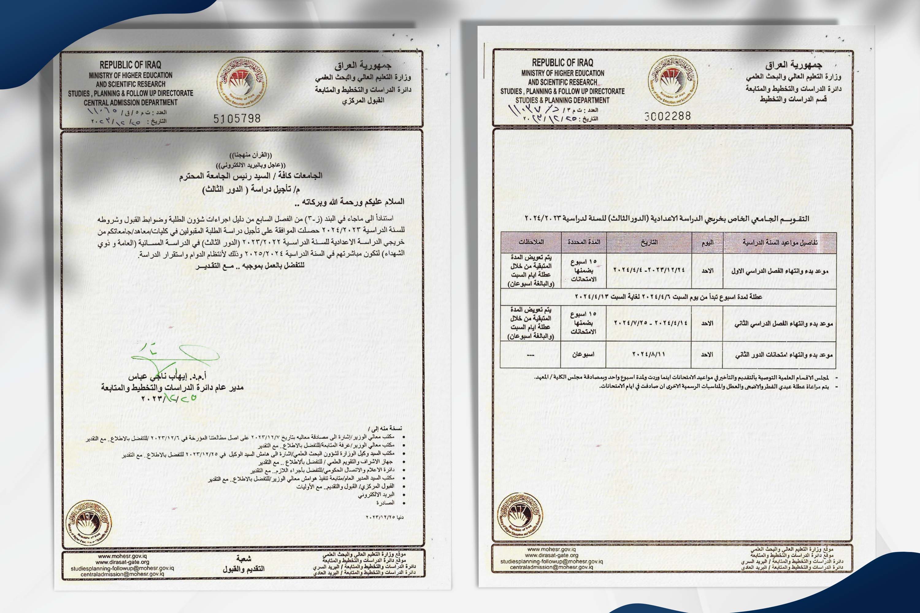 التعليم تعلن نتائج قبول الطلبة من خريجي الإعداديات الإسلامية (الدور الثالث)